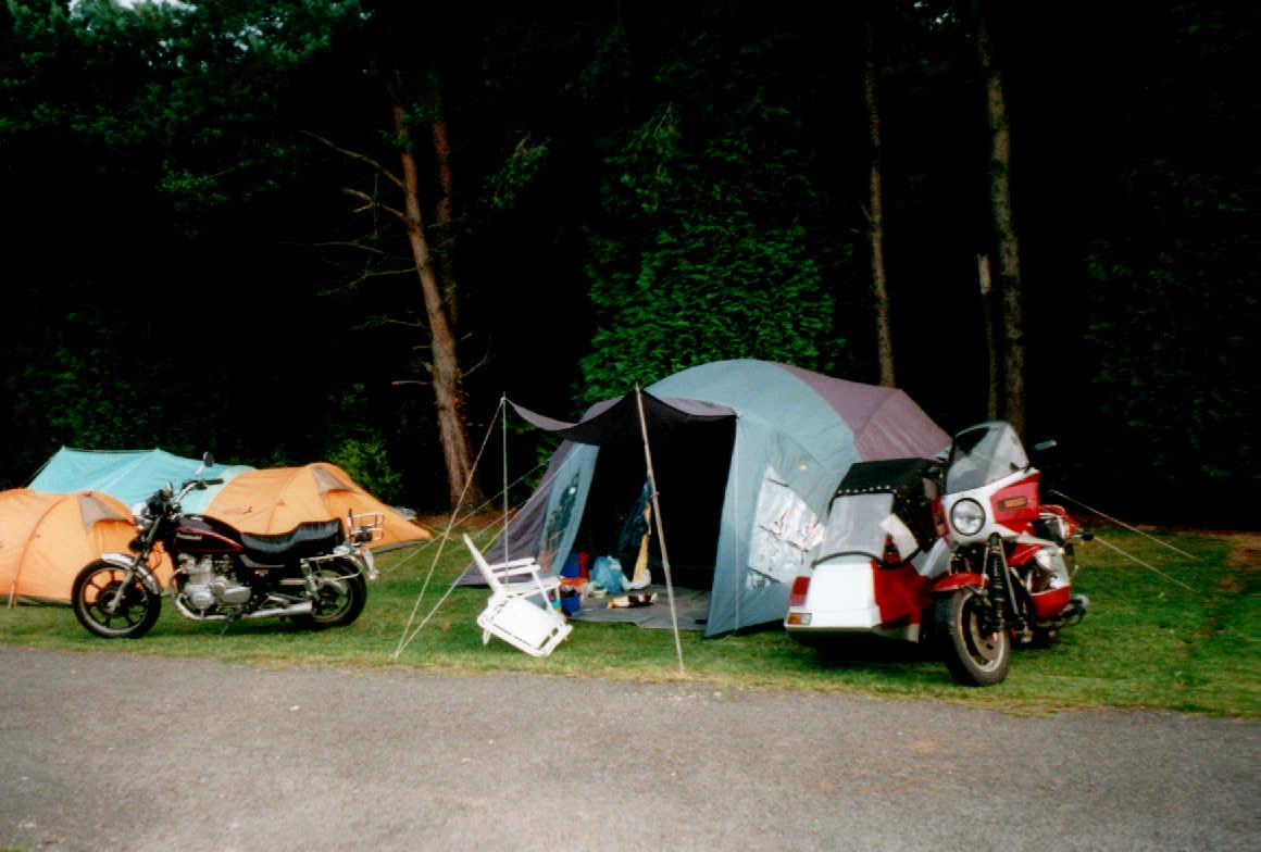 Schon damals mit 3 Personen, Zelt und Klappstühlen (und Töpfchen) auf zwei Motorrädern.