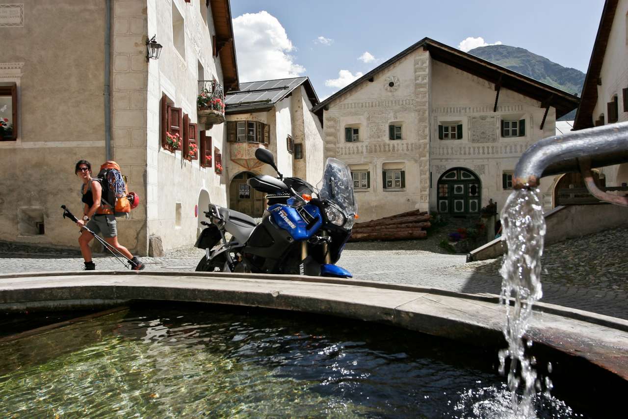 Wer noch ohne Navi fährt kann ich nur empfehlen eins anzuschaffen, man entdeckt im "Kurvenreiche Route planen" Modus die schönsten Straßen und Dörfer ohne Reiseverkehr. Es waren viele am Straßenrand und haben ihre Straßenkarten studiert - kostet Zeit und ihr verpasst eine Menge Sehenswürdigkeiten die nur ein paar hundert Meter rechts und links der Hauptstraße sind. (siehe Ardez: die letzten drei Bilder)