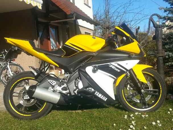 Zufällig noch ein Bild von der YZF meines Sohnes(am Haus). Man beachte bitte die