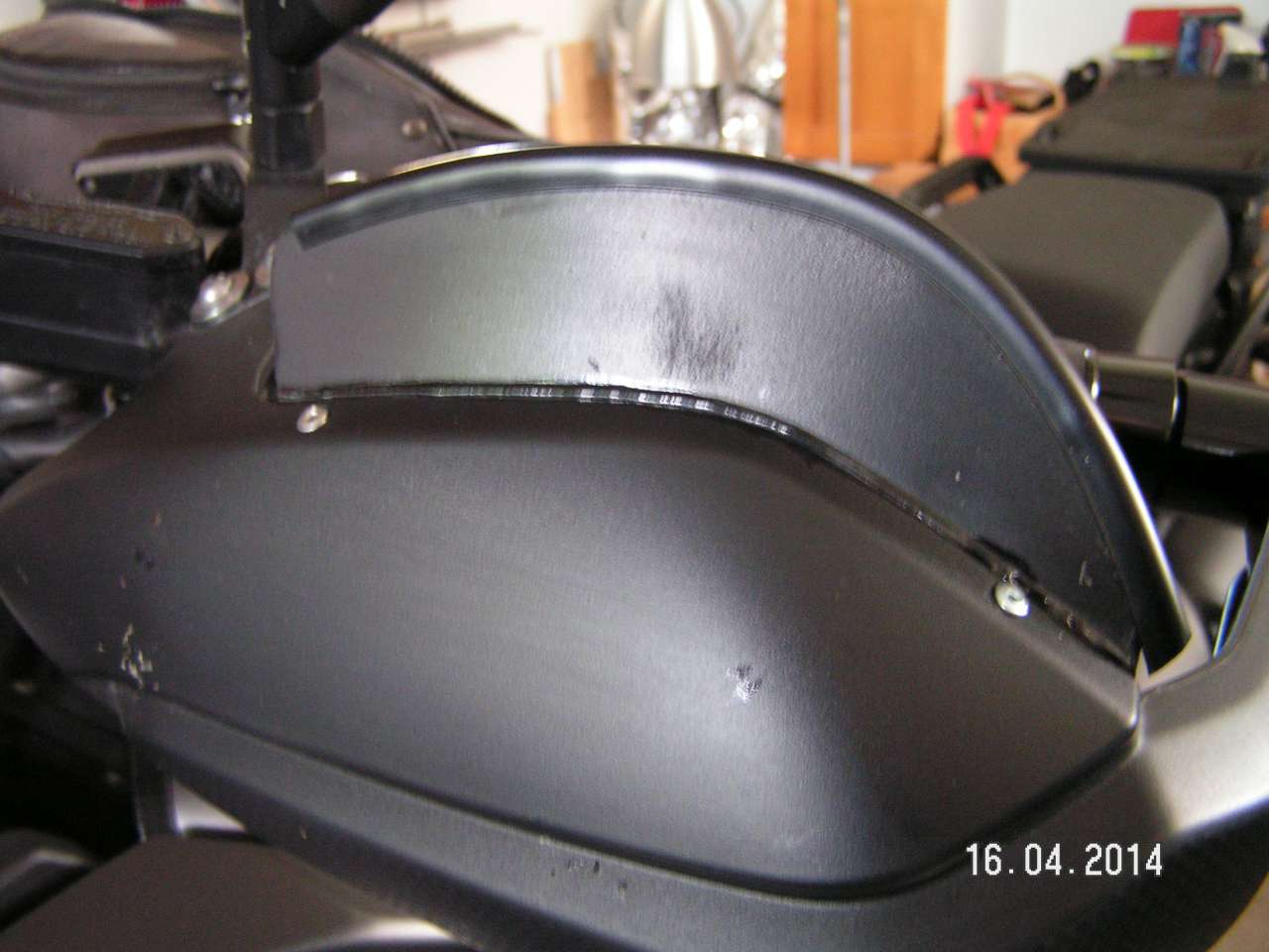 Am Original wurde nichts weggeschnitten, nur je zwei 3mm Löcher gebohrt. Material: schwarze 3mm Plastikplatte