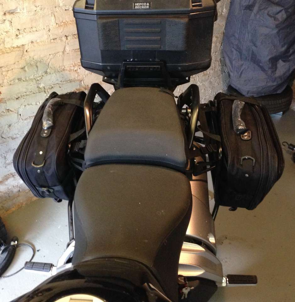 Vielleicht mache ich es auch so dass ich den Dauer-inhalt des Topcase (Regenklamotten und Öl und Verbandsset) in die Satteltaschen packe und die Klamotten für den 2 Tages Tripp dann ins Topcase.