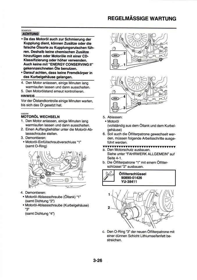 3) Du kannst während das Öl abläuft auch Ölfilter wechseln, Kerzen prüfen/wechseln, Ventilspiel checken, Kühlflüssigkeit wechsel etc.