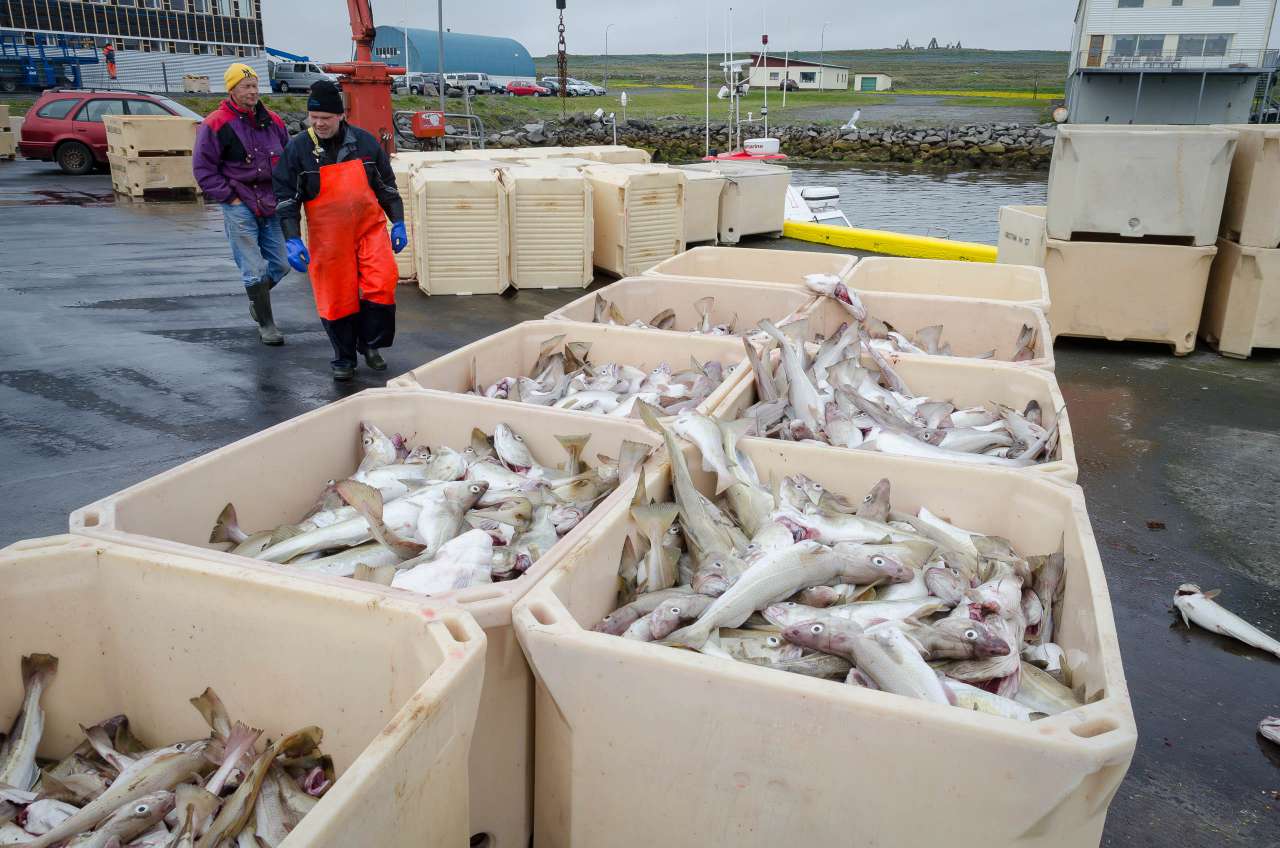 Nach einem faulen Morgen marschiere ich mittags mit Kamera und Fernglas Richtung Leuchtturm. Vereinzelte Autos fahren zum Laden. Am Hafen lädt ein Fischer kistenweise Dorsch aus, ein paar Handwerker bringen Alu-Profilbleche an einem Haus an.
