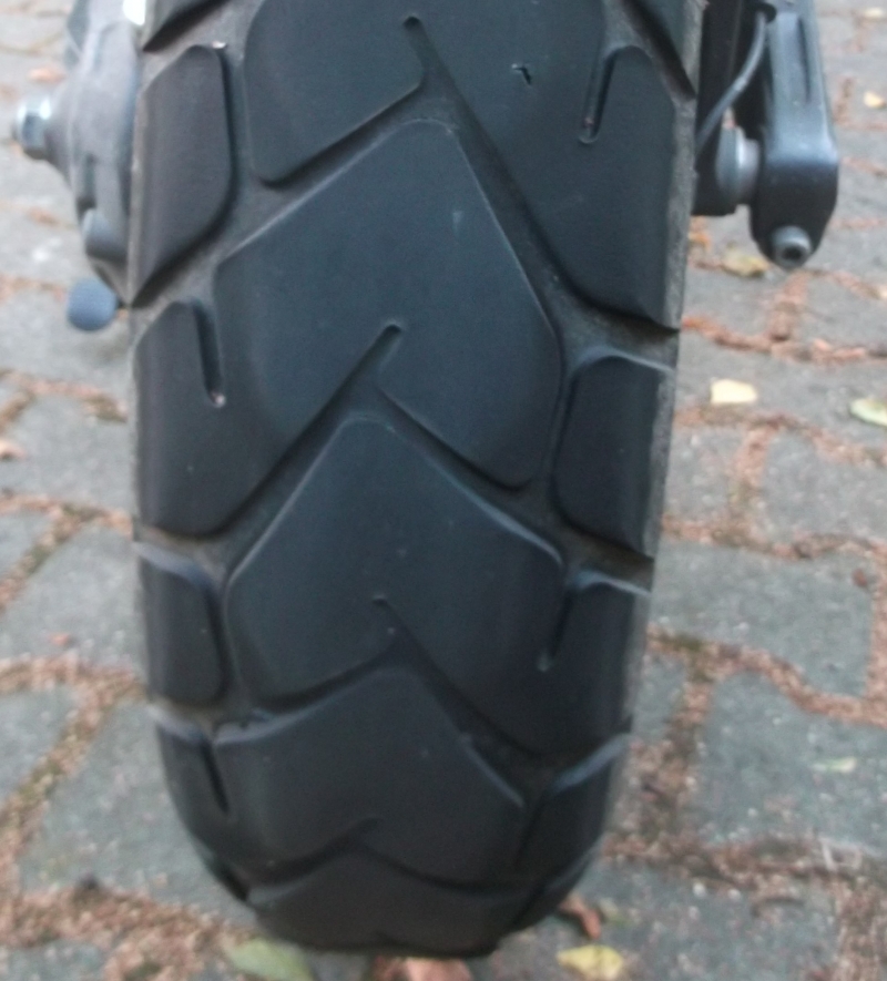 Ich habe bei 10000km die Reifen wechseln müssen. Die 3000km in den Dolomiten waren Verschleiß im Zeitraffer. Danach war der Vorderreifen spitz und der Hinterreifen fast ein Slick.