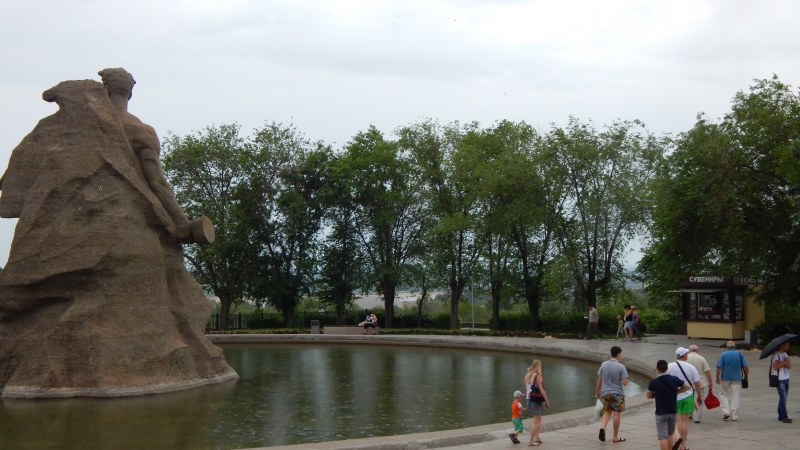 Auf meinen Wunsch sind wir dann dort hin gelaufen und den Berg bis zur Statue Mat Rodina hoch. Ich muss schon sagen, dieses monumentale Denkmal hat mich sehr beeindruckt, zumal ich die Geschichte vom Kampf um Stalingrad ziemlich gut kenne. Besonders die Ehrenhalle mit den Tafeln der Gefallenen, der ewigen Flamme und den dort stehenden Ehrenposten war zutiefst beeindruckend.