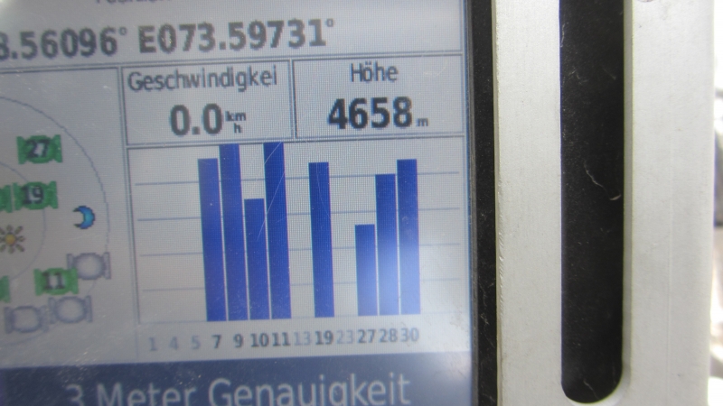 Danach zelebrierten wir unsere Passbezwingung mit einem „give me five“ und einem Siegerfoto. Immerhin befinden wir uns jetzt etwa auf der Höhe des Mont-Blank-Gipfels!