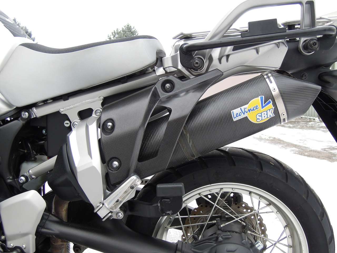 Zudem verdeckte sie nach dem Umbau auf LeoVince-Carbon-Schalldämpfer diesen selbigen - und der ist allemal schöner als diese Kunstoff-Pfanne. Also fahre ich seit Anfang 2012 ganz ohne herum - aber da stören optisch wiederum die Schrauben und Anbau-Vorrichtigungen der ehemaligen Blende etc.