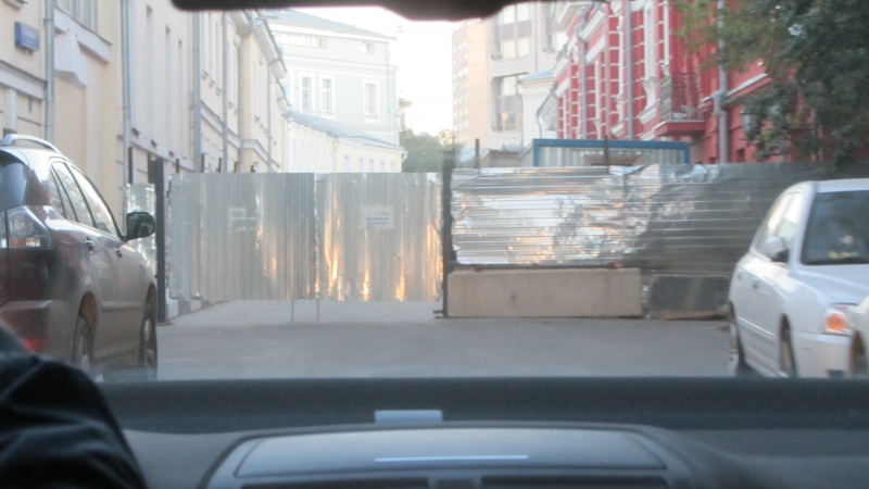 Thom gibt die Adresse vom Hotel an und dann geht’s los durch das morgendliche Moskau. Der Verkehr ist noch nicht so schlimm, so kommen wir zügig voran. Aber dann wird’s echt knifflig, bedingt durch viele Baustellen und Umleitungen kommt der Taxifahrer trotz Navi nicht so einfach zum Hotel. Nach gut 20 Minuten umherirren findet er dann doch eine Weg zum Hotel. So hatte er sich das Wohl nicht vorgestellt, aber er bekommt ein gutes Trinkgeld, so dass er nicht ganz „umsonst“ gefahren ist.