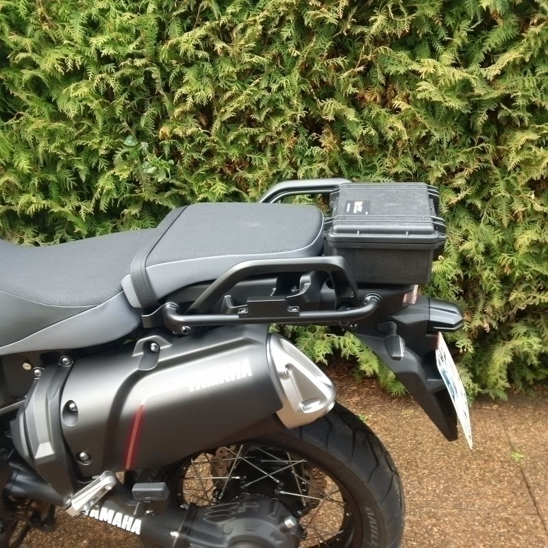Ich mag keine großen Top-Cases, auch wenn sie noch so praktisch sind. Aber dieses kleine Teil finde ich ganz schön und unauffällig. Zur Zeit findet dort der Touratech-Mini-Kompressor und ein wenig Reifenflickzeug seinen Platz.