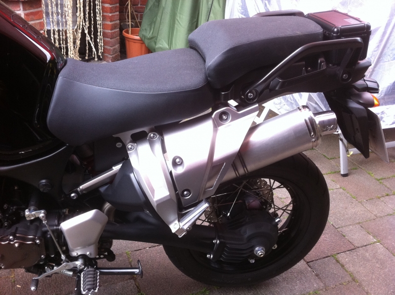 Ich mag keine großen Top-Cases, auch wenn sie noch so praktisch sind. Aber dieses kleine Teil finde ich ganz schön und unauffällig. Zur Zeit findet dort der Touratech-Mini-Kompressor und ein wenig Reifenflickzeug seinen Platz.