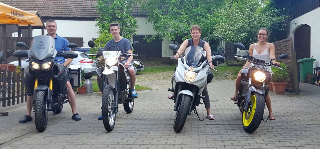 Warscheinlich würde ich mich für den Sozius der Tochter entscheiden, scheint mir die sicherste Variante zu sein mit dem gelb leuchtenden Felgen.
