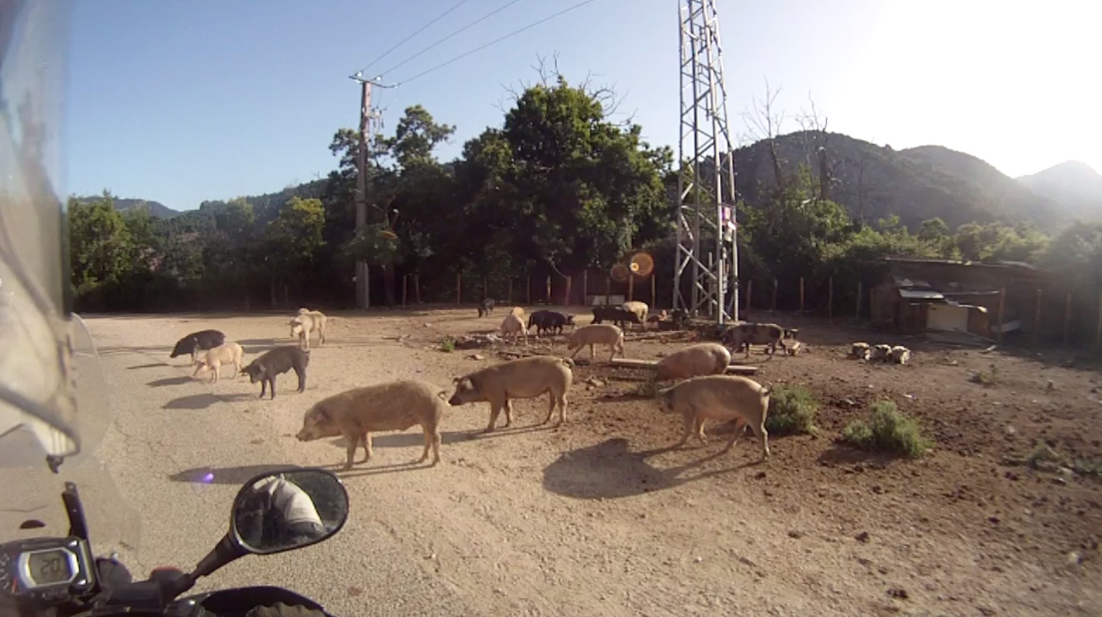 Und genau das war der Plan für Donnerstag. Gestartet wurde wieder um 7.30 Uhr, um den Touri-Reisebussen aus dem Weg zu gehen. Busse gab es keine, aber Schweine ohne Ende. Die Viecher nutzten auch die Gunst der Stunde, um frei über die Straßen laufen zu können.