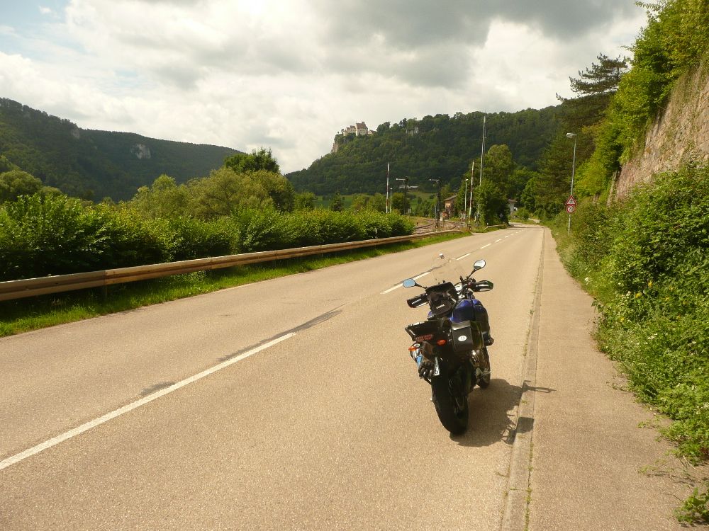 Heute im Oberen Donautal kurz vor Schloß Werenwag. Einige der schwarzen Wolken wurden nach meinem Lunch für eine Weile ziemlich undicht. Da das Wasser sich auf weitläufige Sträßchen mit wenig Verkehr ergoß war das wieder einmal ganz gut