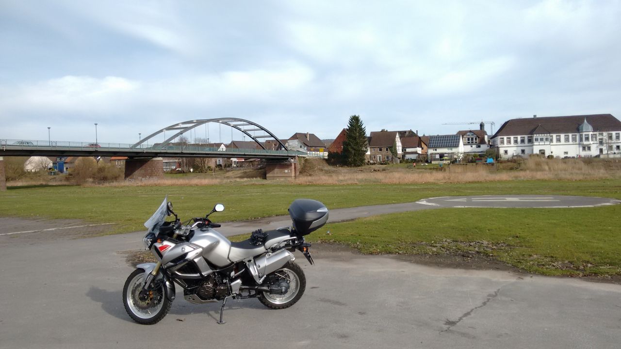 heute war es dann mal soweit. Erste Proberunde durch den Hirschwald 70 km Teer, 30 km Matsch. Jetzt lohnt es sich, die alten 2016er Fliegen vom Moped zu waschen.