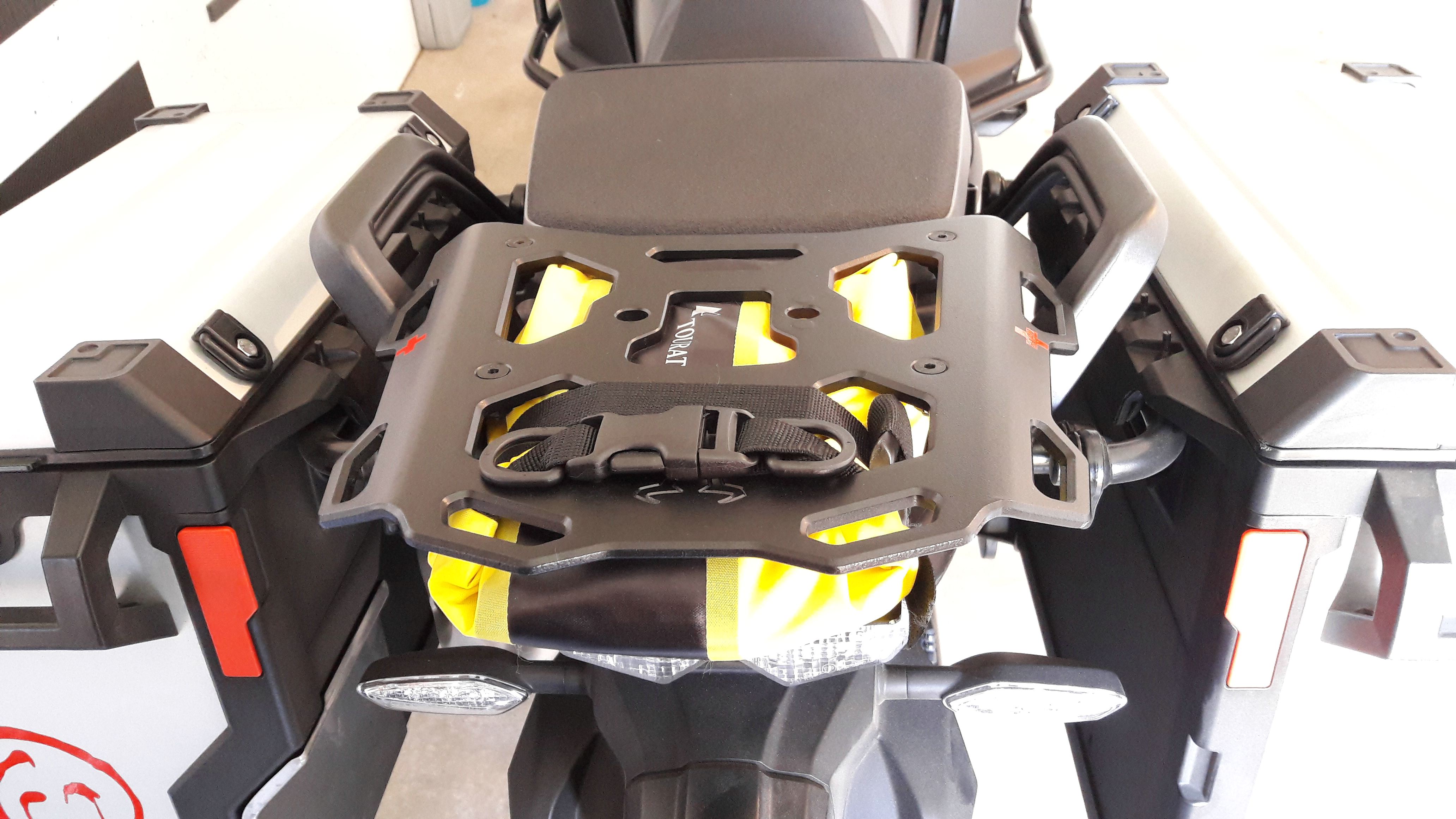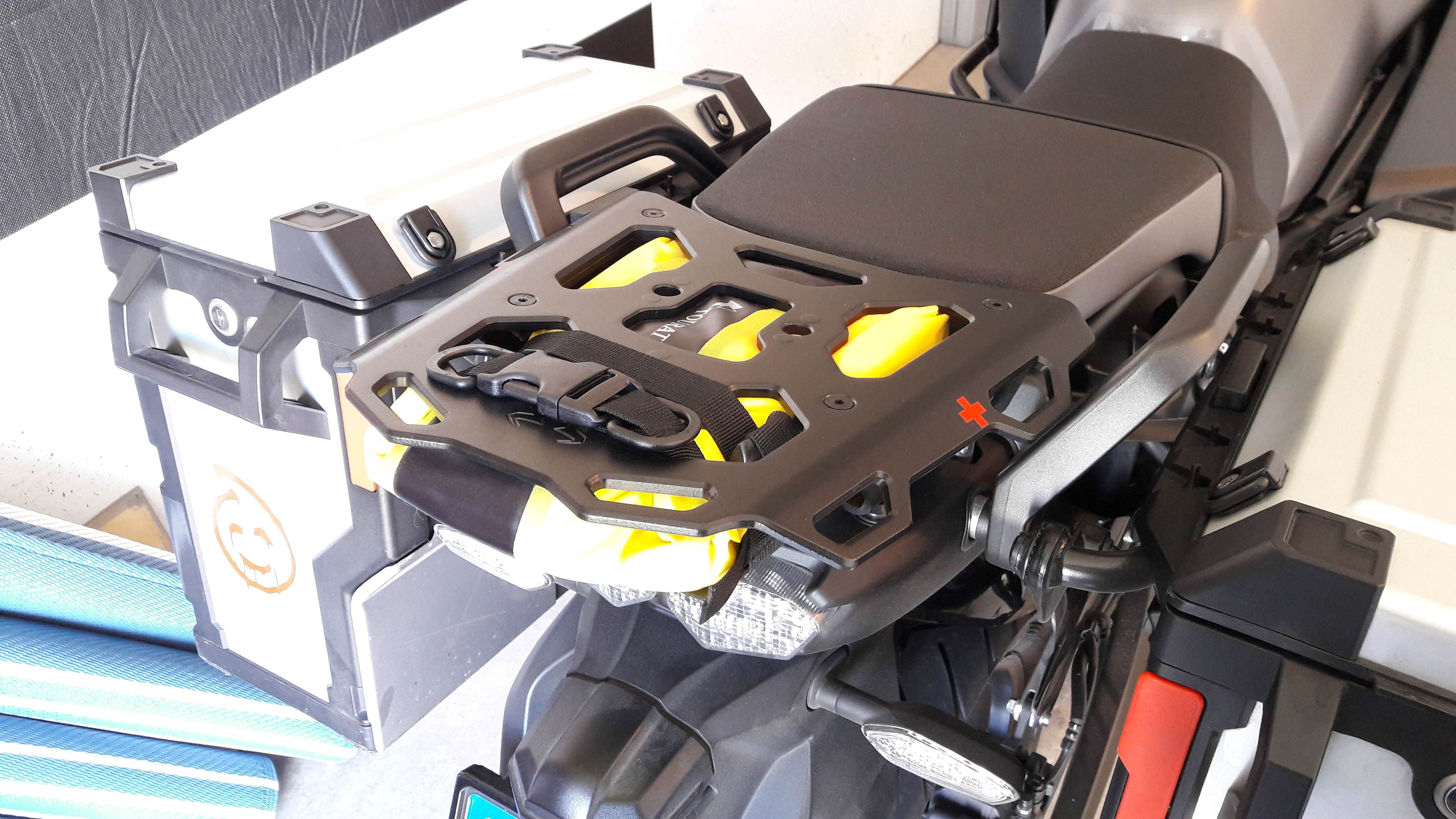 Bin immer wieder erschrocken wie riesig die Altrider Gepäckbrücke ist. Das ist keine Brücke sondern ein Schuhschrank. Da kann man bestimmt super Badelatschen darunter packen um den Füßen bei einem kleinen Stopp etwas frische Luft zu gönnen :-D