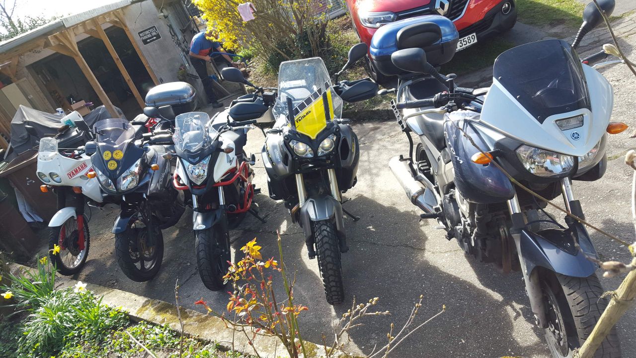 Das steht bei uns so in und vor der Garage....Auf dem Bild fehlen noch eine 2. V-Strom eine XS 750 (zerlegt zur Restauration ) und eine 80iger Jahre Vespa....