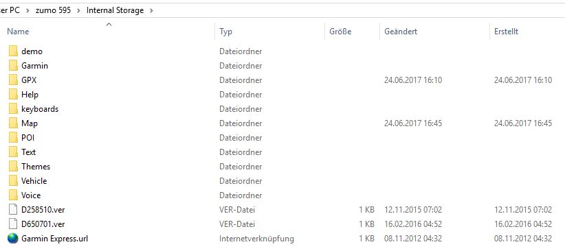 Hallo Leone blu, auf dem Navi selbst ist bei mir nur die aktuelle Karte drauf. So sieht es bei mir aus:Leone blu hat geschrieben: So 27. Aug 2017, 13:07 ... eine Frage generell: Werden beim Kartenupdate auf dem Zumo alte Karten gelöscht/überschrieben?