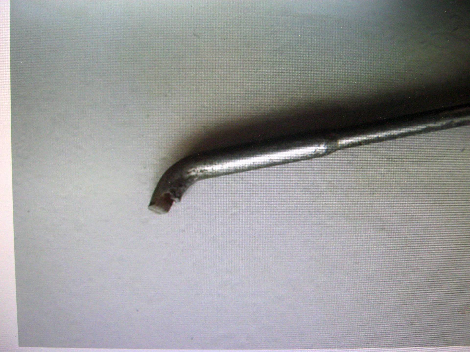 Beim Weiterdrehen, ohne das Knackgeräusch ist sie dann am Fuß, im Stegloch gebrochen.