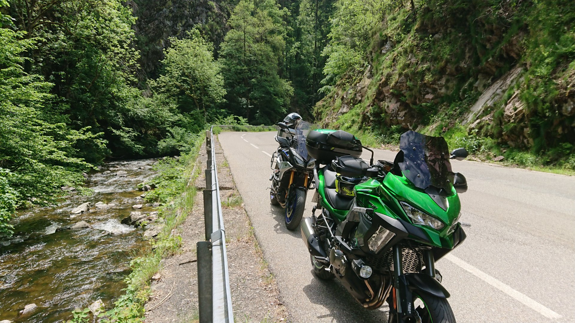 Ich könnte euch dann noch ein paar Strecken drüben im Pfälzer Wald für eure Heimfahrt zeigen/mitfahren.