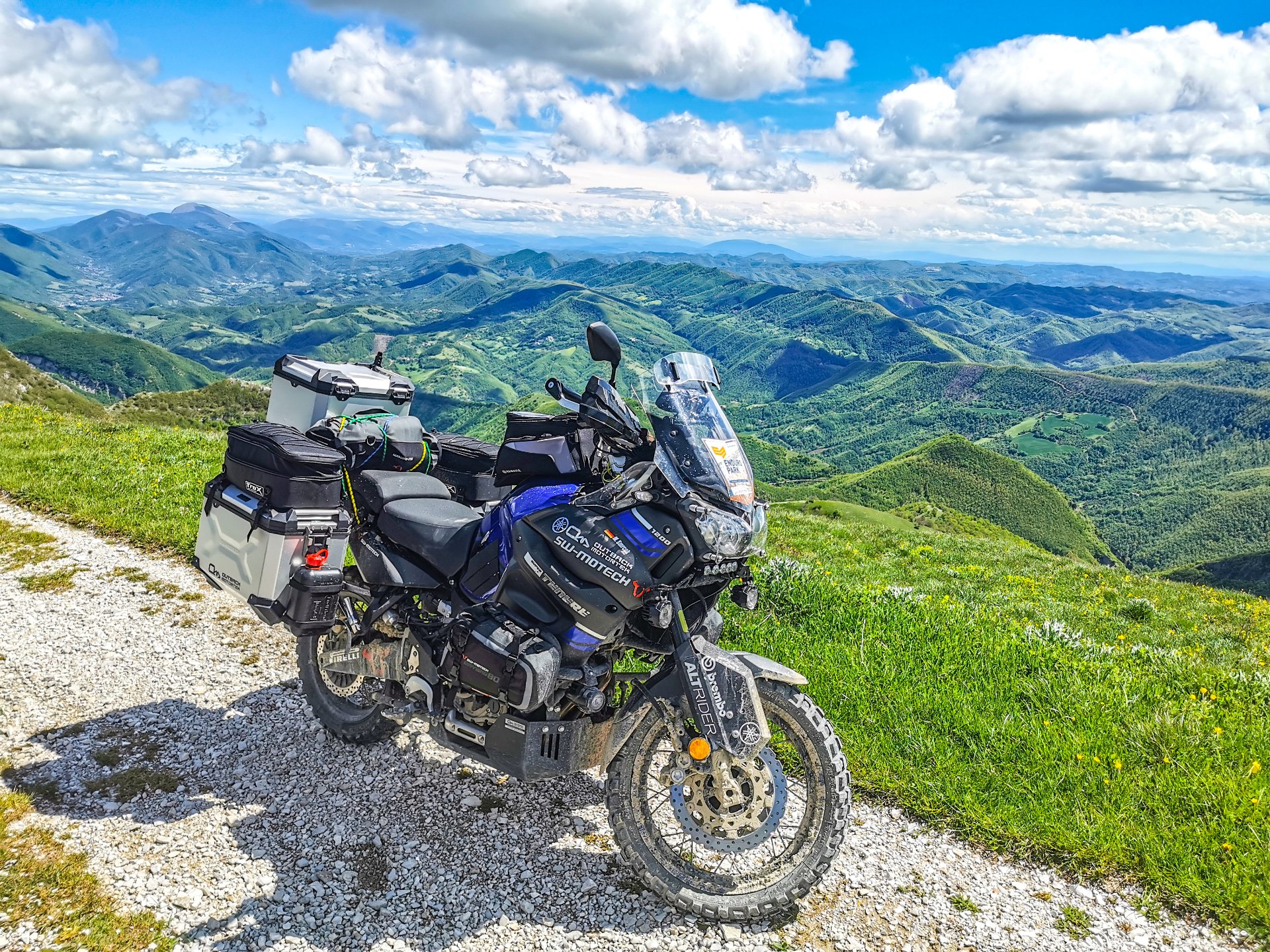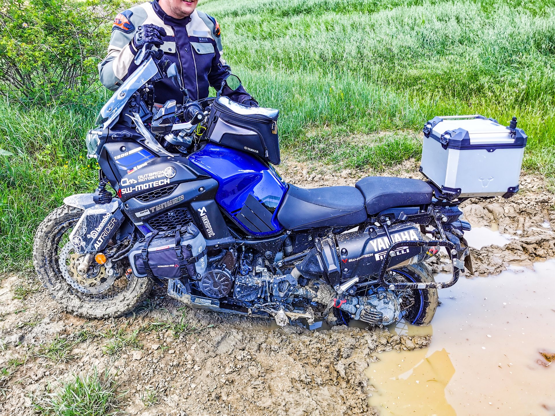 Ich fahre auf den Touren immer voll beladen ( Siehe Bilder ) und bin seit meinem ersten Offroadtraining vor 3 Jahren auch Sturzfrei im Gelände unterwegs.