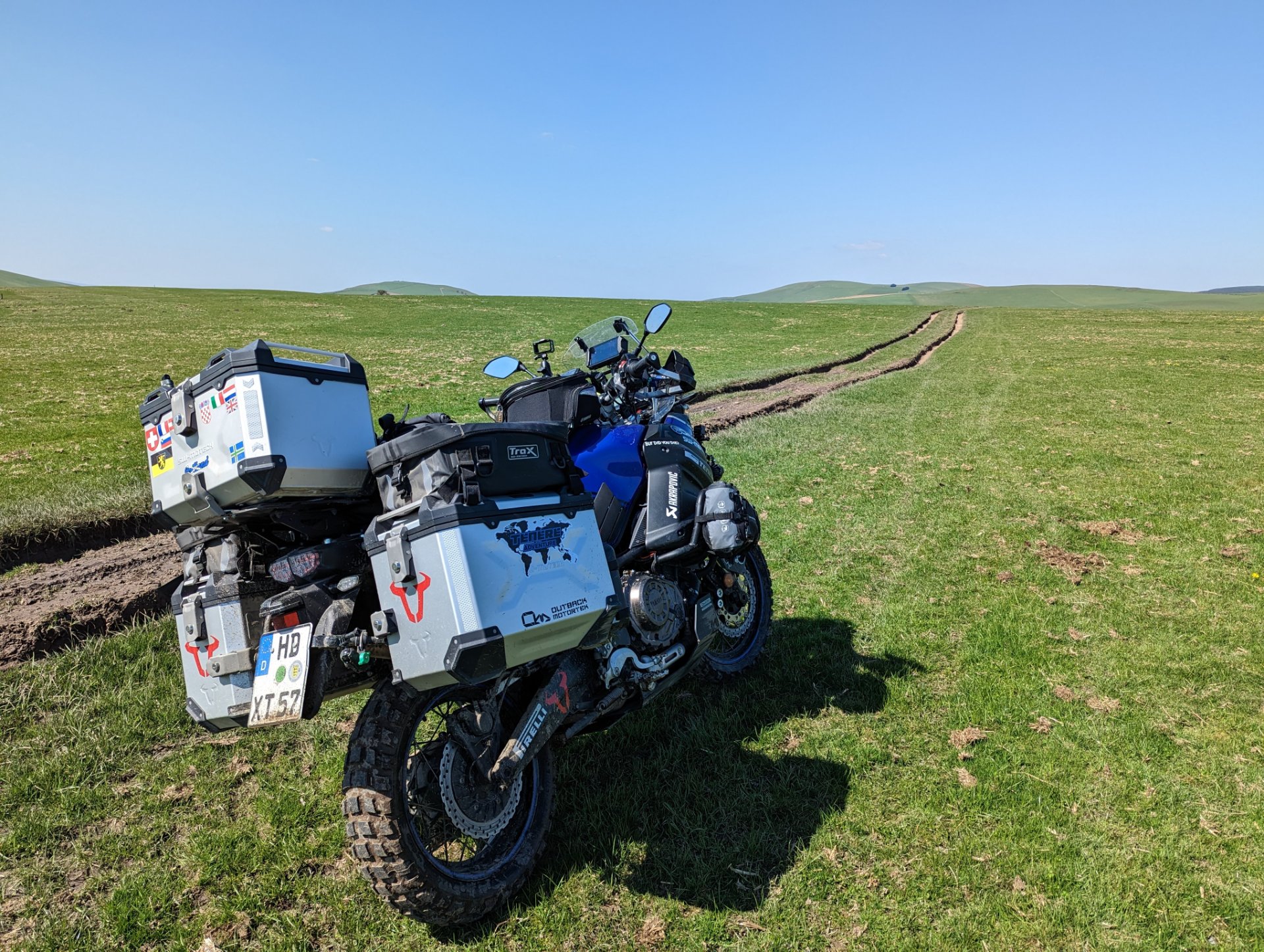 Mit einer leichten 250er Enduro würde ich mir solche Ausflüge in die Pampa locker zutrauen. Da dürfte es dann auch mal hoch hinaus gehen... so lange ich weiß, dass ich viel Federweg und griffige Stollen zur Verfügung habe, sie locker wieder aufheben und nicht viel dran kaputtgehen kann.
