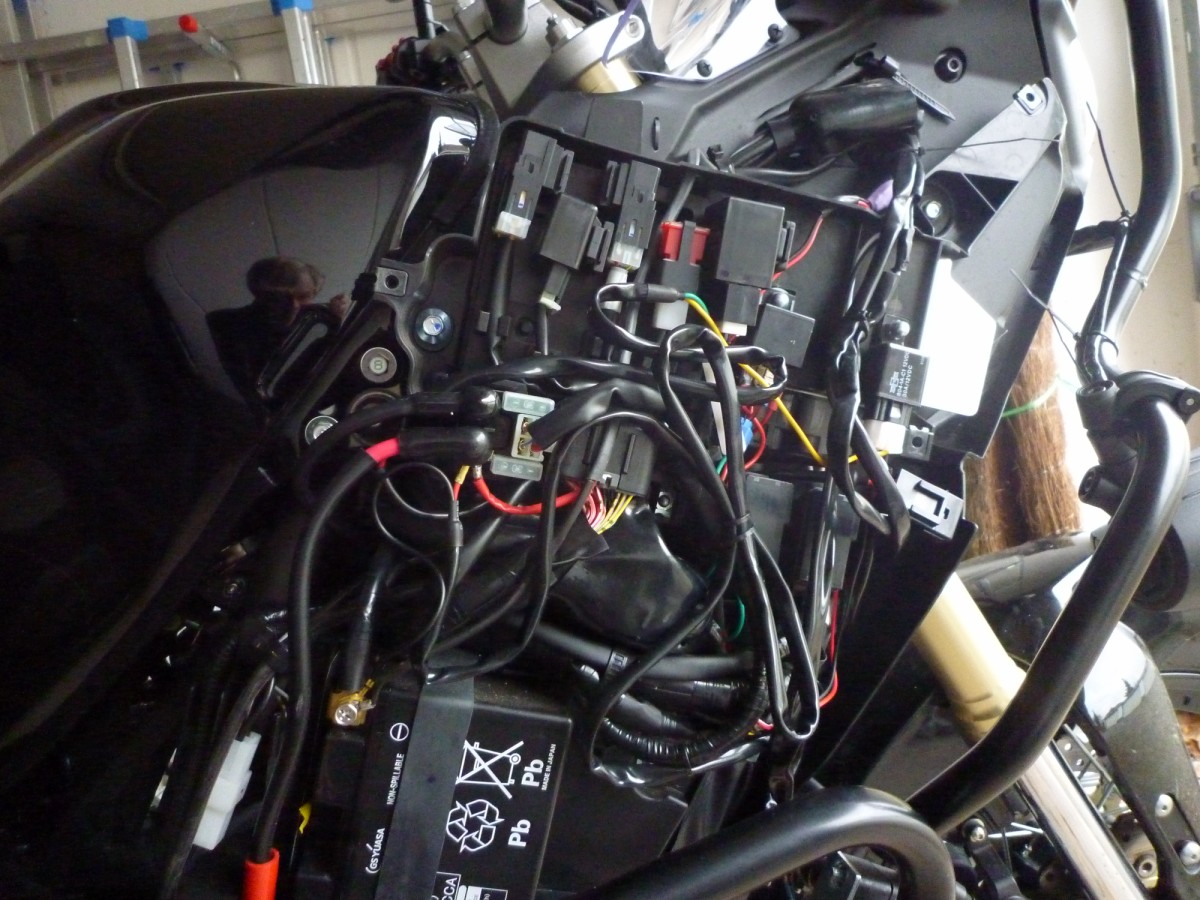 Obwohl die Aufregung (meinerseits) wegen des Anschluss mit dem dreipoligen Stecker am Ende doch völlig umsonst war...In dem Wust von Kabeln habe ich gesucht und gesucht. Aber nur den vierpoligen Stecker gefunden. Vom Dreipoligen keine Spur. Nach erneutem Vergleich mit dem Bild aus dem Wiki kam ich dann langsam dahinter, dass sich dieser nicht vor mir versteckt sondern vom Vorbesitzer offensichtlich abgeknippst und für die Griffheizung(?) benutzt wurde. Nun sind sie also nicht so charmant angeschlossen. Aber egal, es funktioniert.