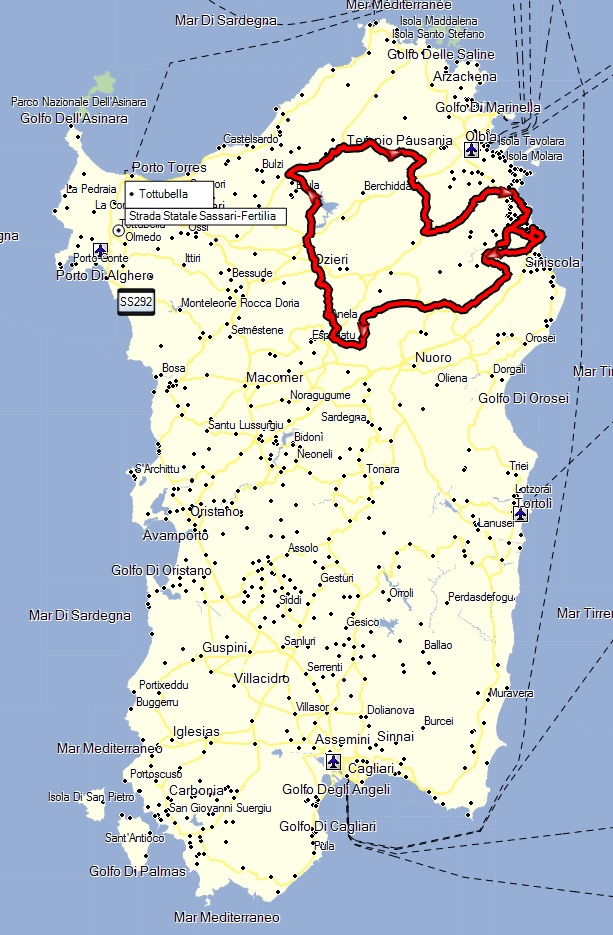 Über eine sehr mit Sand verschmutze Etappe gelangten wir nach Anela, wo wir wieder über kleinste Sträßchen durch den Ort geführt wurden. Kurvenreich folgten wir der SP36 bis Ozieri, wo wir endlich eine Tankstelle fanden. Unspektakulär verlief die Strecke bis zum Lago Del Coghinas. Dort liefert uns ein Subaru einen beachtlichen Schlagabtausch über die SP2 (eine Video wird folgen). Über die SP672 erreichten wir wieder Tempio. Alles in allem war dieser Tag geprägt von super Fernblicken in der Bergen. Wir erreichten eine Höhe 960m über dem Meer. Der Monte Albo ist beeindruckend und jeder Sardinien-Reisende sollte sich diesen Berg antun. Der sonnige Tag war nur doch die heftigen Windböen beeinträchtigt. Wir haben Sardinien an diesem Tag voll und ganz genossen.