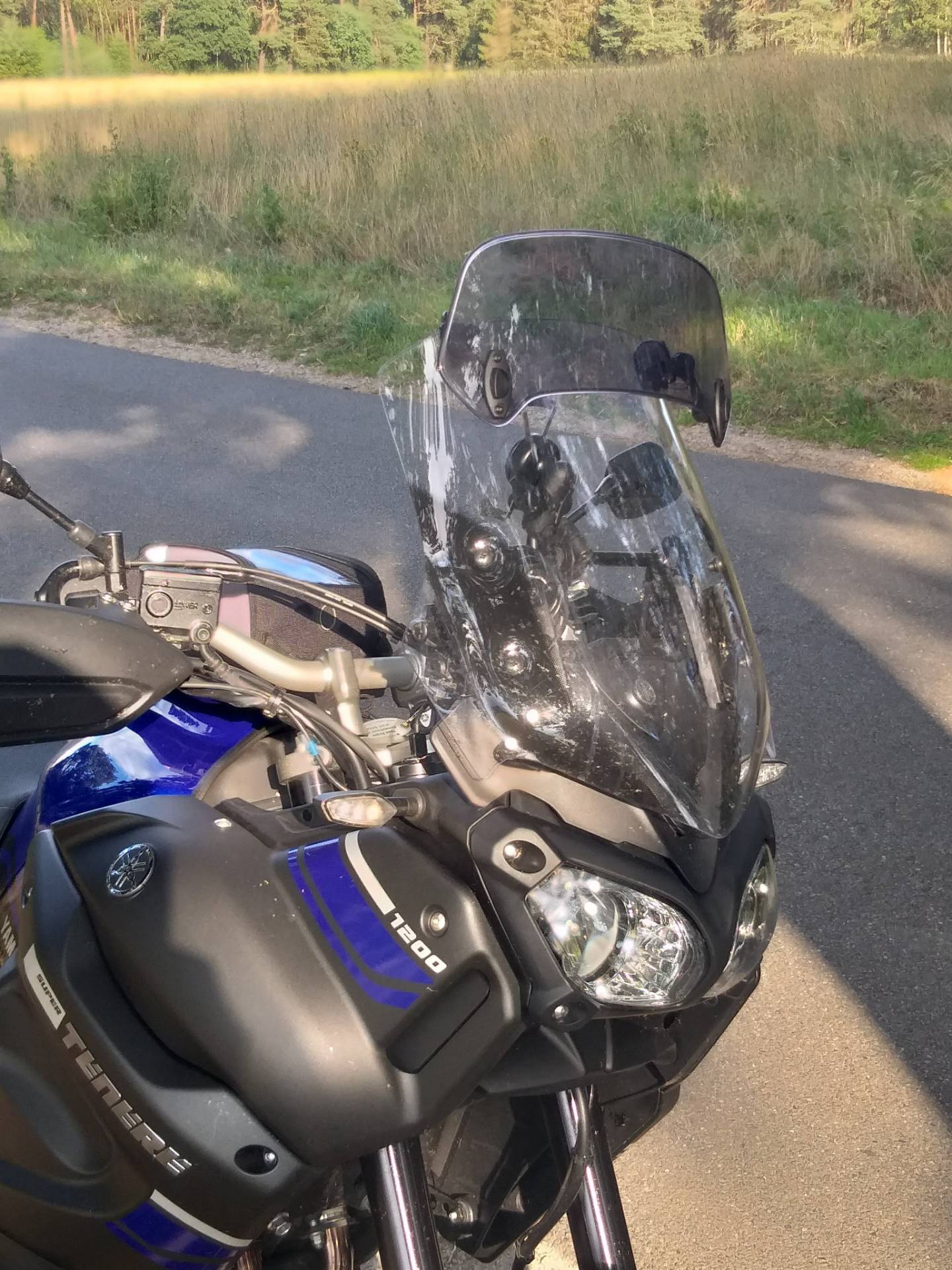 Ergebnis: ich bin begeistert. Ziemliche Ruhe hinter der Scheibe, keine Verwirbelungen, kein Zerren am Helm oder meiner Textiljacke.