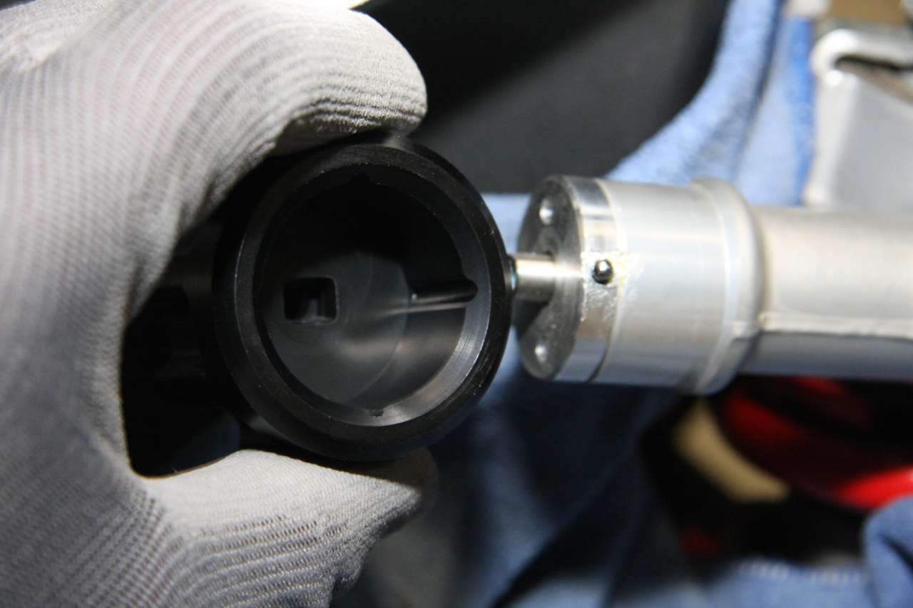 Allerdings muss man die zwei Federn und die beiden Kügelchen gut einfetten und etwas in das Gehäuse drücken, bevor man das Handrad vorsichtig aufschiebt (eine Kugel ist dabei, trotz untergelegtem Lappen verschwunden):