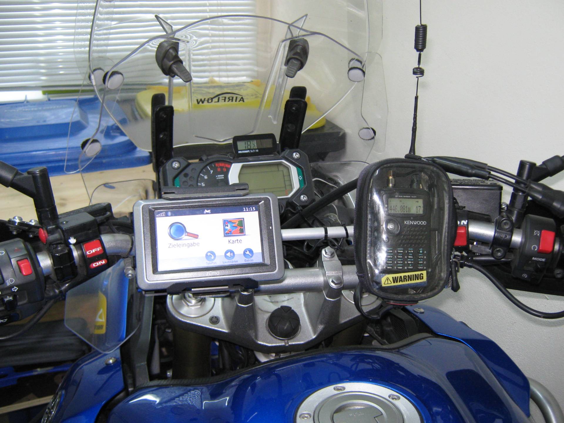 Wir haben in der Gruppe nur PMR- Geräte. Ich habe eine Autocom-Anlage mit Kenwood-Funkgerät und Garmin 660 über das ich auch telefonieren kann.