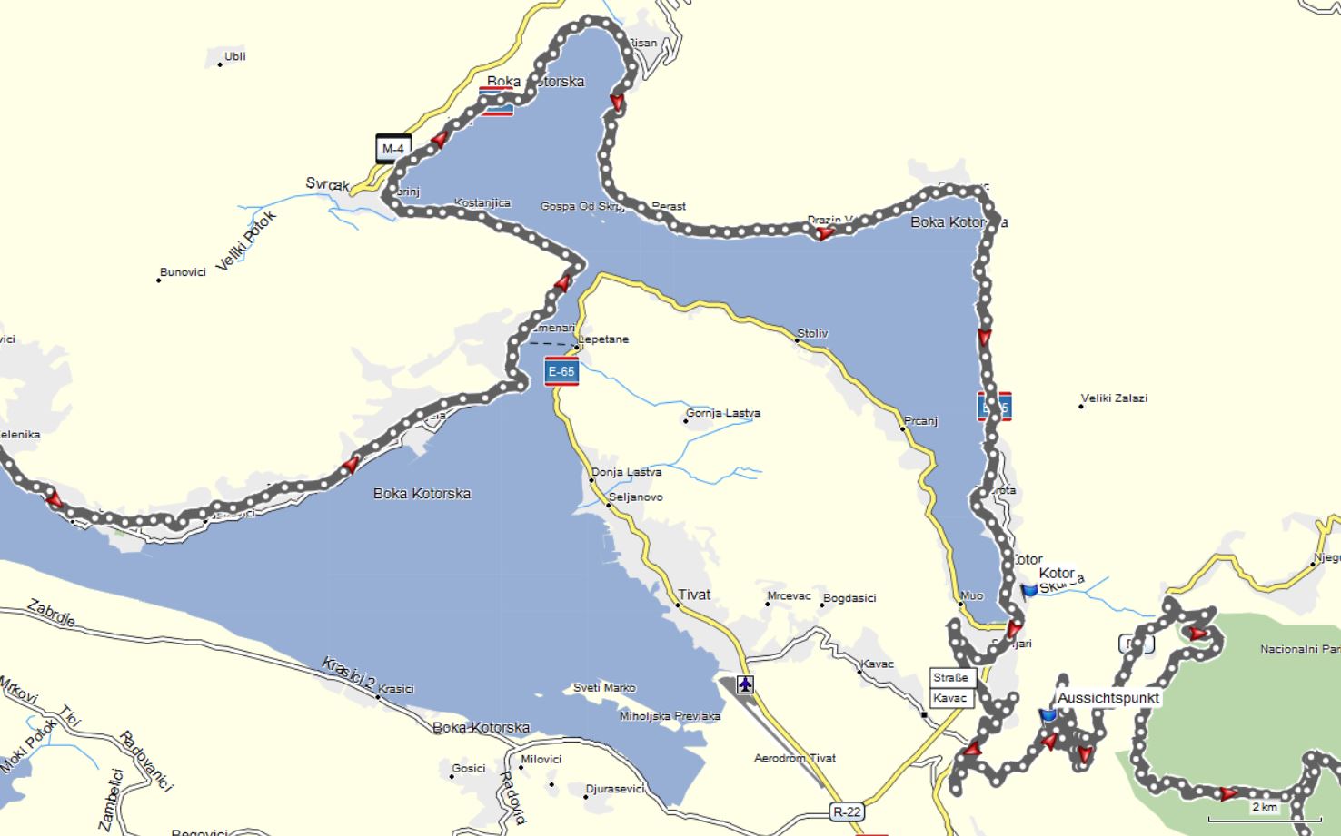 Zum dem Aussichtspunkt ab Kotor sind es aber nochmal 11km (siehe Karte).