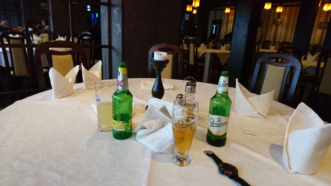 Nach der Grenze waren es noch knapp 50 km bis zur Unterkunft, einem Motel mit Tankstelle dicht an der Straße im Örtchen Biled. Die Zimmer sind soweit okay, aber Peter musste noch einmal zur Rezeption und meckern, weil kein Wasser aus den Hähnen kam. Auch das klappte dann. Leider gab es kein Restaurant und auch der Erkundungsgang ins Dorf war essentechnisch nicht erfolgreich. Also kurz in das Magazin Mix rein und Getränke (kein Bier!) und für mich Tucs und für Peter ein Erdbeercroissant gekauft.