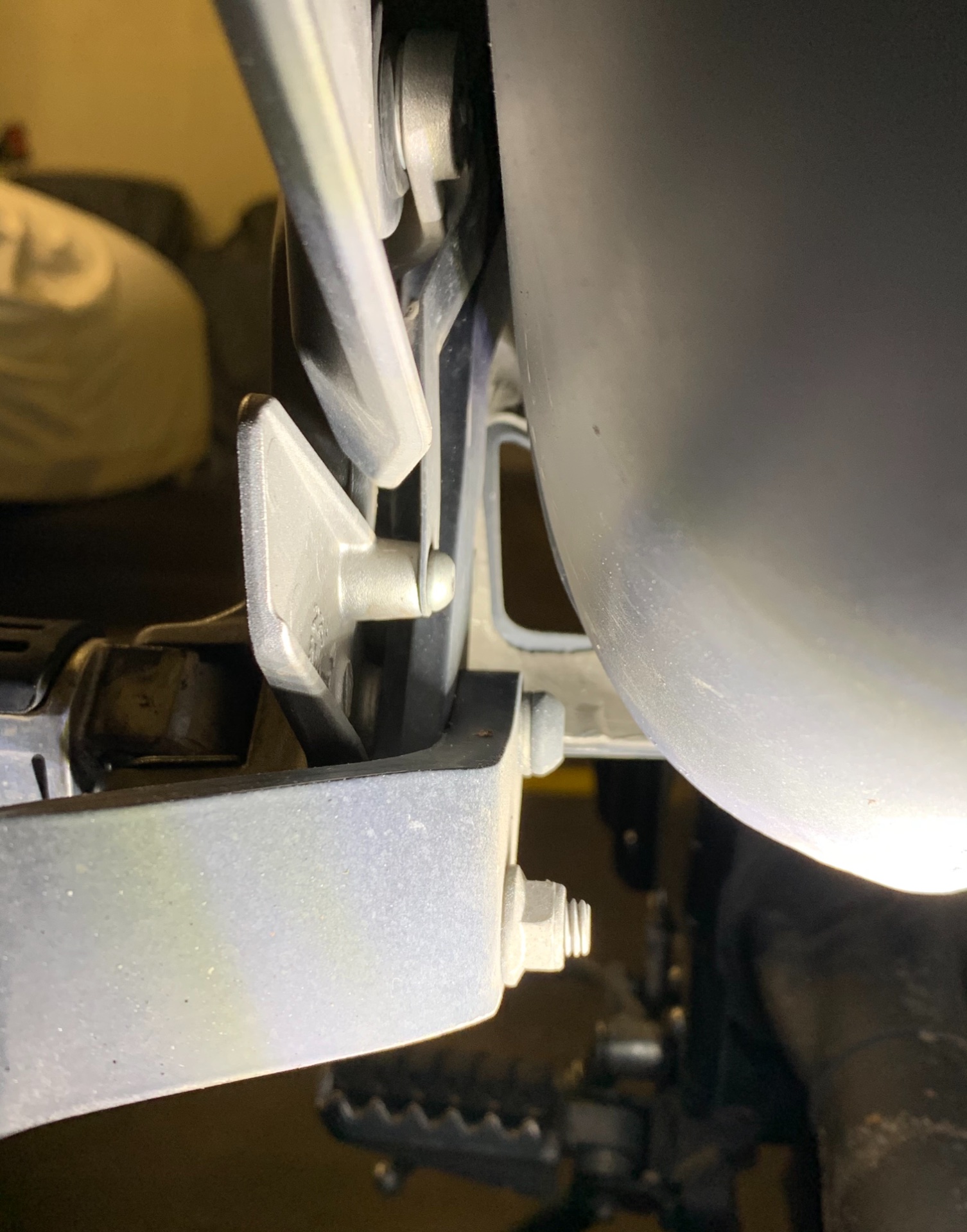 Bild 2 vorne links, da befindet sich unter dem Sozia-/us-Griff nur eine U-Scheibe zum Rahmen.