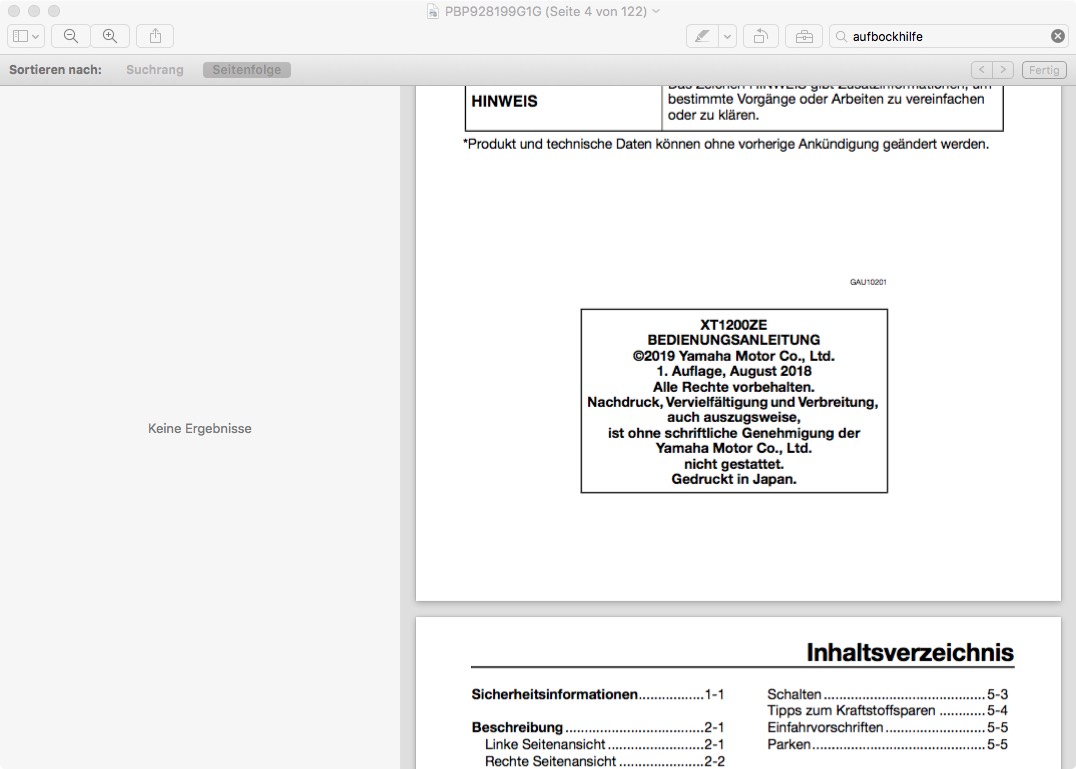Das Wort "Aufbockhilfe" gibt es nicht in der Bedienungsanleitung.