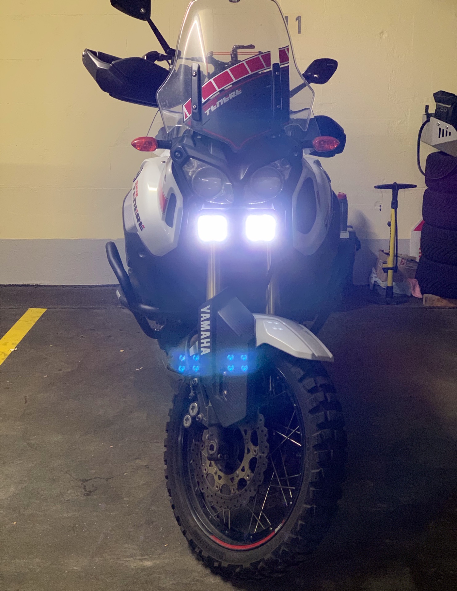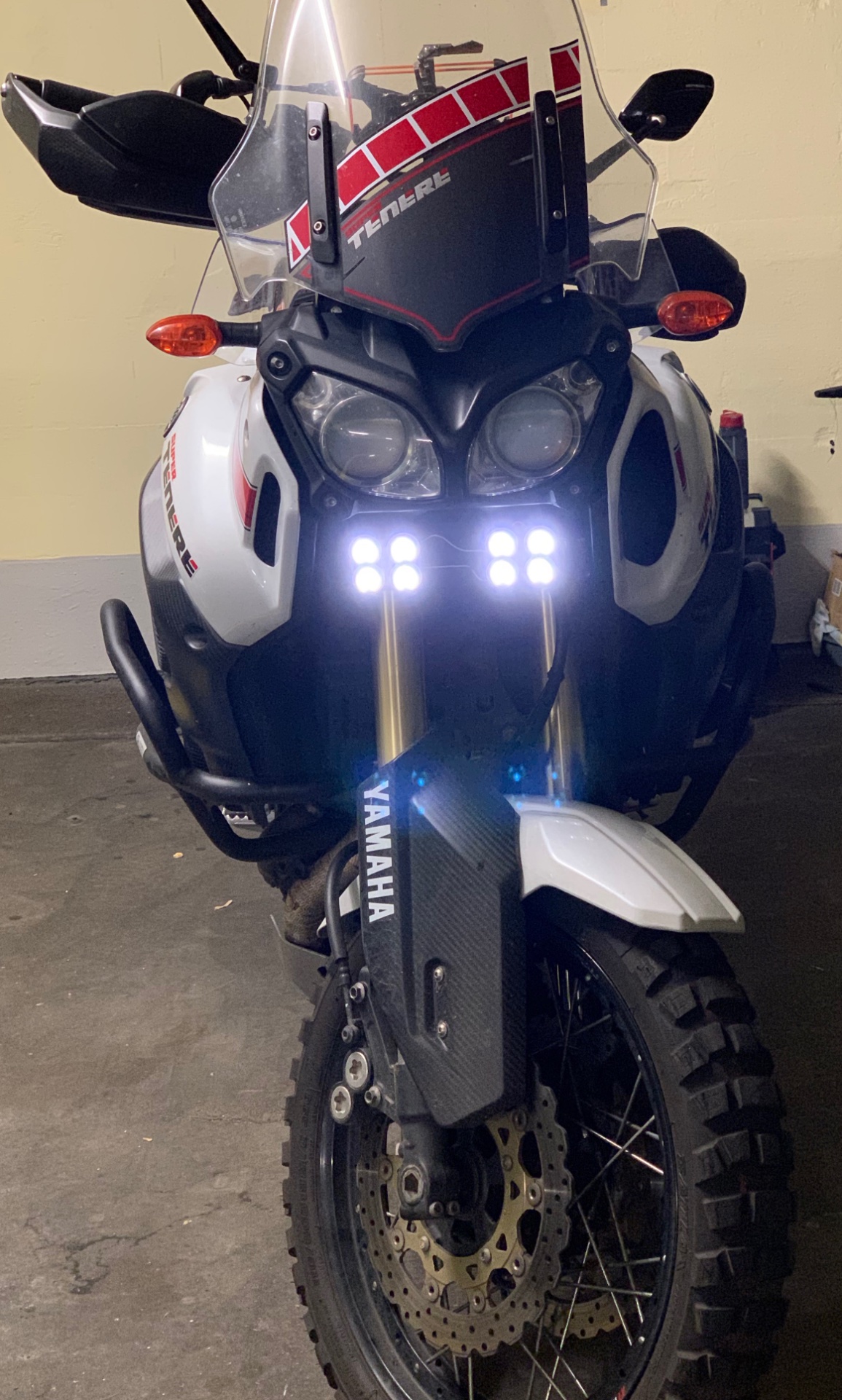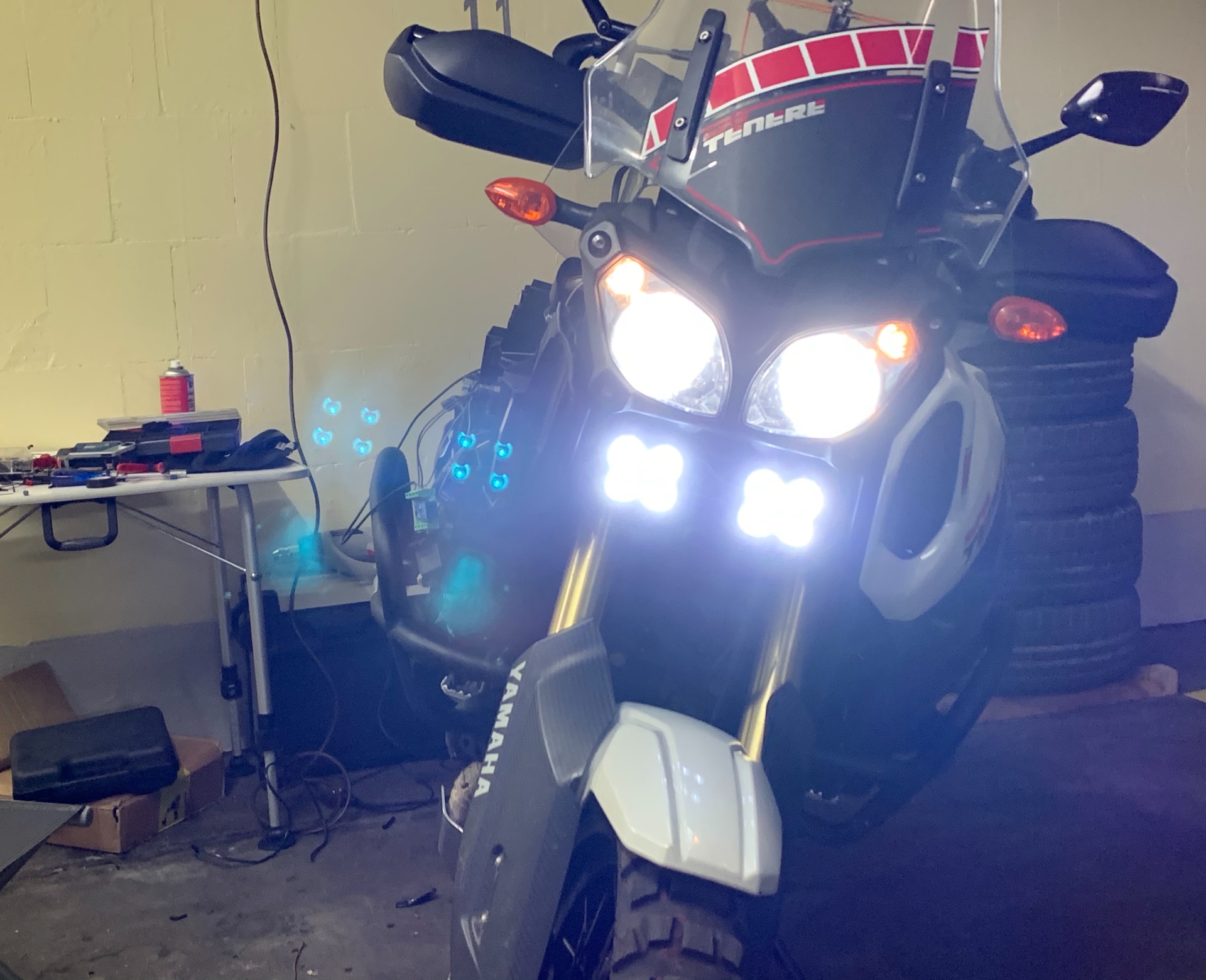 Der bunte Kabelsalat rechts ist vom Touratech Xenon Fernscheinwerfer