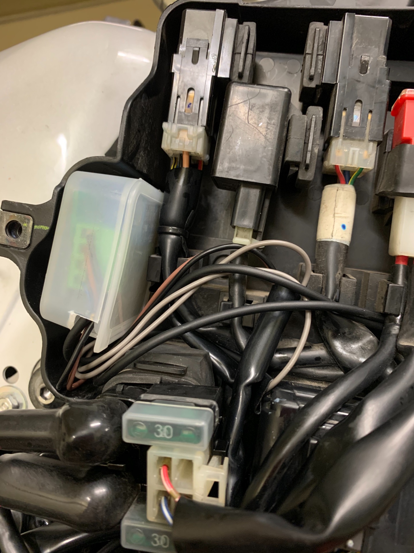 Weiterhin die Steuerung für die TFL in der scharzen Box mit dem Aufkleber.