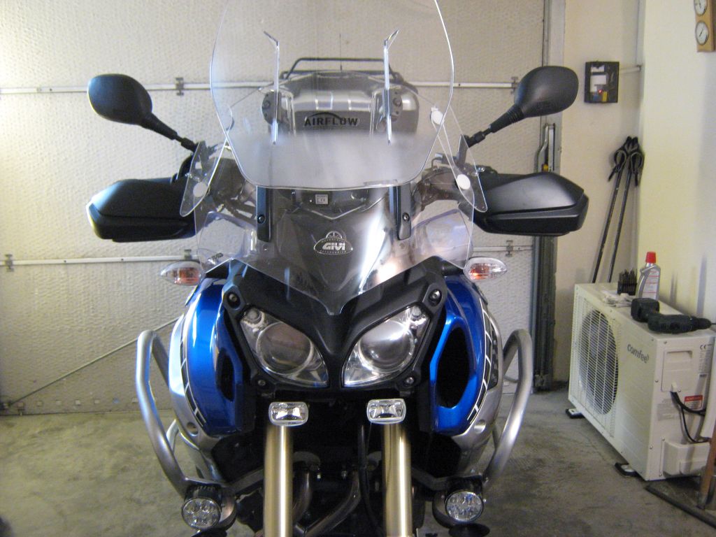 Ich habe die Givi Airflow mit der verstellbaren Scheibenhalterung von Touratech montiert.