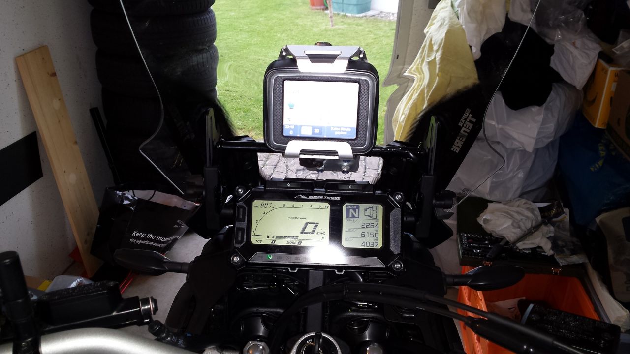 Ich könnte das Navi jetzt mit der Platte von TT nach unten verschieben, allerdings ist es dann Essig mit dem Tankrucksack.