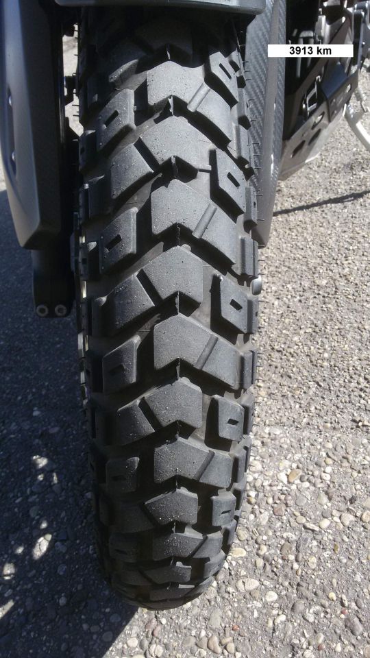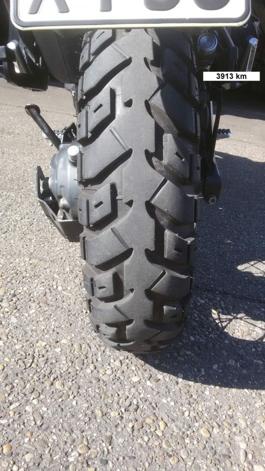 So wie auf deinen Bildern sahen meine Heidenaus vor (!) meiner diesjährigen Marokkotour aus und hatten auch ca. 15.000 auf dem Buckel. Weil ich vor der Reise aber keine Zeit mehr hatte, die Reifen zu wechseln, habe ich es schließlich ohne Wechsel versucht. Und siehe da: Die lächerlichen 6.000 Km der Reise haben die Reifen auch noch mitgespielt. Je eckiger sie werden, umso weniger nutzen sie sie sich ab, weil die Auflagefläche größer wird. Nach der Rückkehr mit dann 21.000 war aber wirklich Schluss. Die Verschleißmarkierungen waren nicht mehr zusehen, weil sie flächig mit der Umgebung eine Einheit bildeten. Das soll jetzt keine Empfehlung zum Nachmachen sein, weil sich die Reifen dann auch nicht mehr gut fahren. Aber gehen geht's.