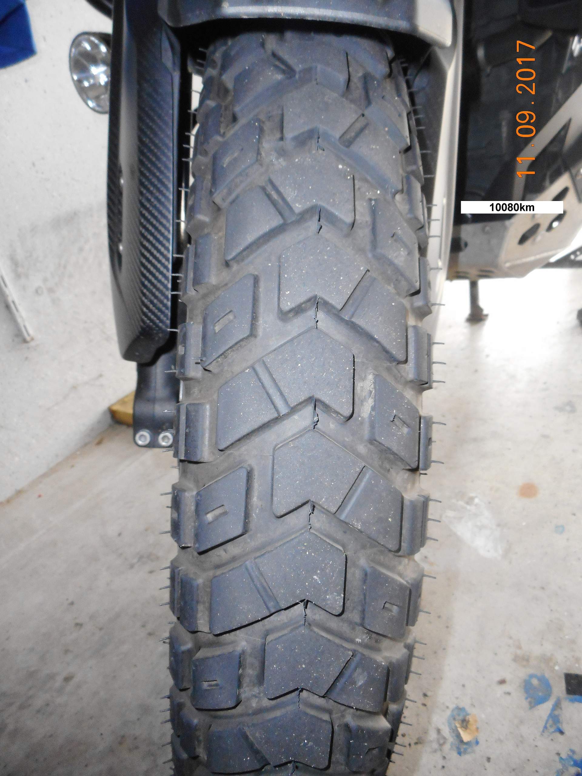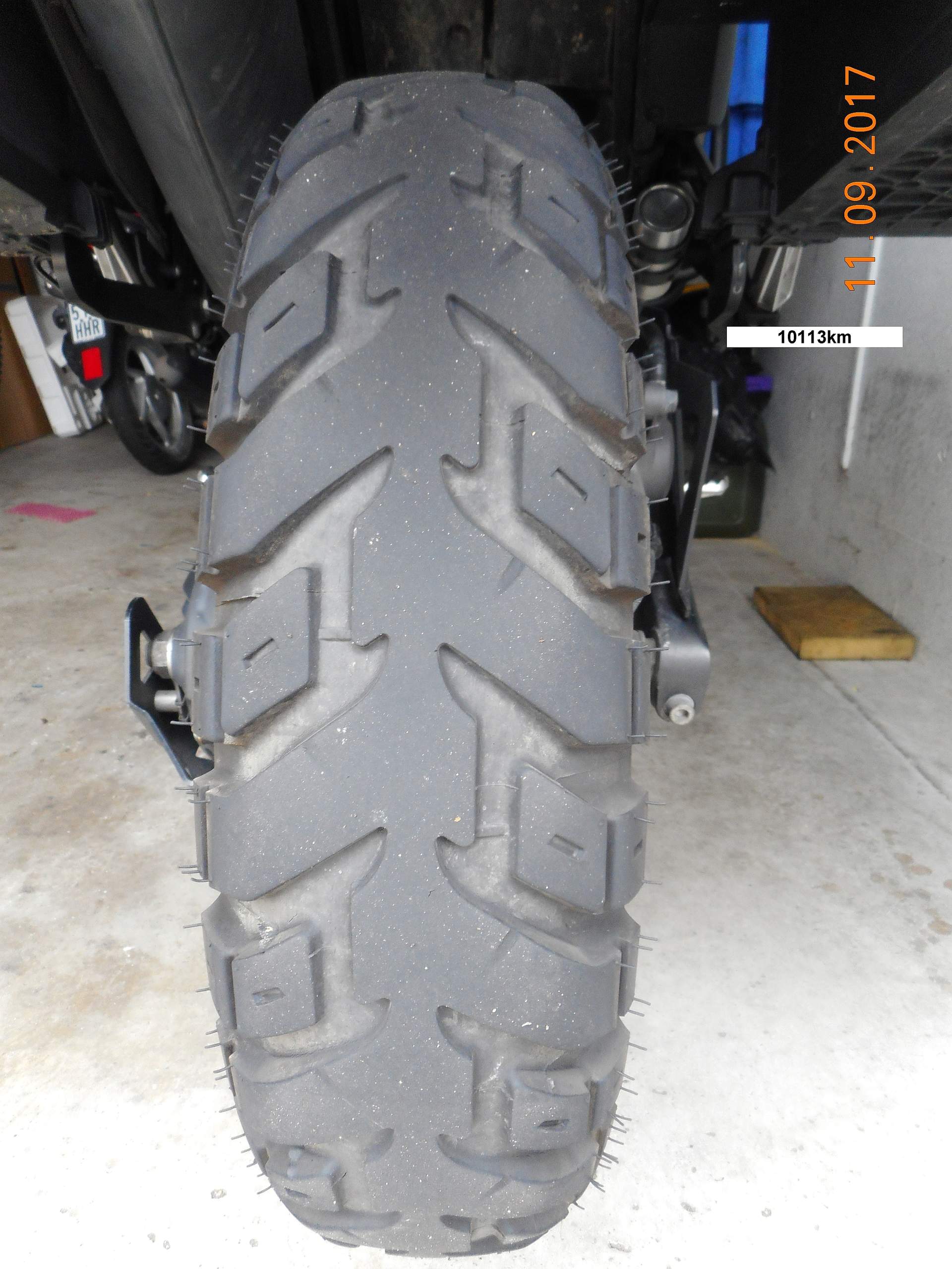 Rechnerisch bleiben dann bis auf 2mm gerechnet für den hinteren Reifen noch 5000km und für den vorderen noch 20000km übrig.
