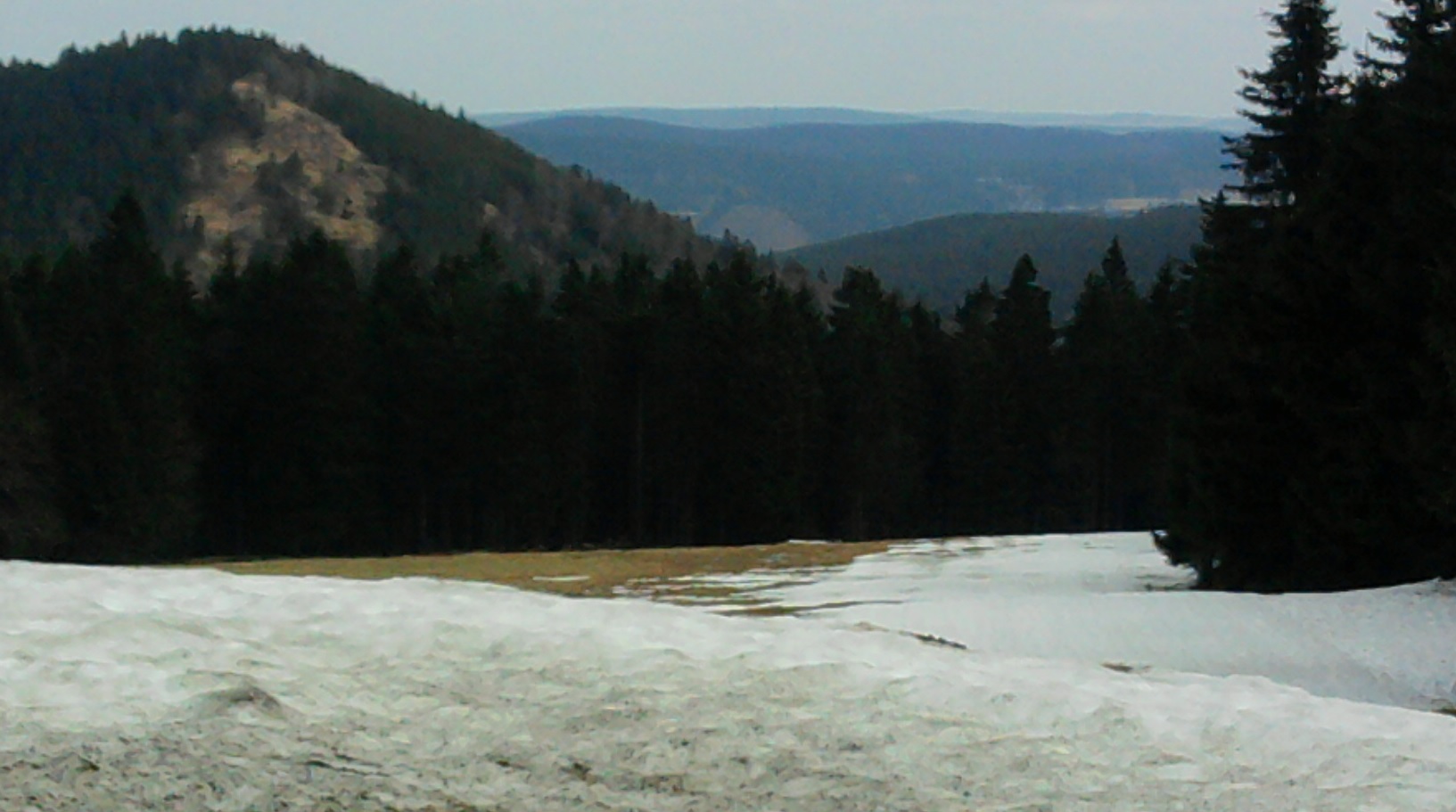 Die Schneereste müssen noch wegschmelzen. Es liegt aber nur noch dort Schnee wo keine Sonne hinkommt oder wo die Räumdienste diesen aufgahäuft haben. Teilweise noch neben der Straße wo mit Schneefräsen das Zeug in den Wald und die Felder geblasen wurde oder wo Schneepflüge das Zeug neben die Straße geschoben haben.