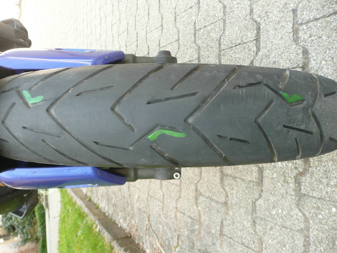 Ich habe letzte Woche den Vorderreifen wechseln lassen müssen, weil der an den Flanken zu wenig Profil hatte. Das kam vermutlich davon, dass ich vorne schon mit 2,5 Bar zuviel Druck reingegeben habe, schließlich ist die Vorgabe nur 2,25 Bar. Da ich hinten bis zur Dolomitentour noch einige km fahren kann, werde ich den erst Ende August wechseln.