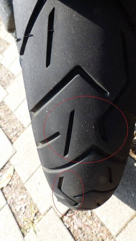 Befestigst Du "das komplette Gepäck" an der Verkleidung ? Sowohl Leute mit wenig Beladung (ich) als auch die mit voller Last, die mit Luftdruck nach Betriebsanleitung (wieder ich) und die "Totpumper" bringen diese beidseitigen Auswaschungen an dem Knick der fast in Umfangsrichtung laufenden Profilrille nahe der Reifenmitte hervor - die Du mit Sägezahn vermutlich meinst. Ich bezweifle, daß Du mit 2,9 Bar vorne zu einem anderen Ergebnis kommst.Nix-GS hat geschrieben: Mi 27. Jun 2018, 15:00 Da unserezu den schwergewichtigeren Mopeds, ich nicht gerade ein Federgewicht bin und auf diesen Streckenteilen das komplette Gepäck mitzuschleppen ist, werde ich mal mit etwas höherem Luftdruck vorne (2,9) experimentieren, ob damit die heftige Sägezahnbildung vorne etwas besser in den Griff zu bekommen ist.