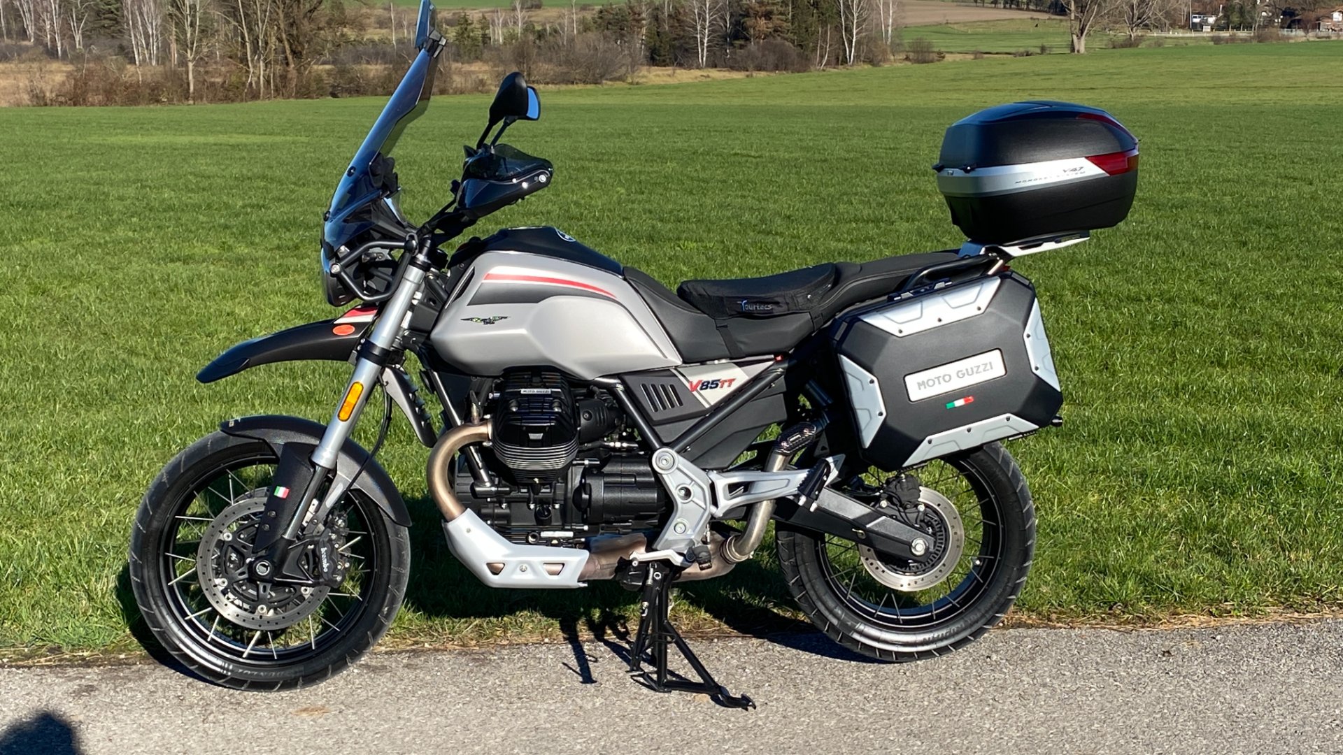 Da hier so trefflich diskutiert und debattiert wird über XT-fremde Bikes, möchte ich nun ein Update zu meinem Motorrad-Status geben. Seit 2 Wochen ist mein Yamaha Tmax530DX Roller verkauft. Er hat mich sehr intensive 15.000km begleitet und die Freude am Motorrad neu entfacht. Nun leistet er (hoffentlich) treue Dienste (mit frischem TÜV) an einen ex Gold Wing Fahrer. Dem waren mit Sozia die über 430kg zuviel geworden. Verständlich für mich. Meine Moto Guzzi V85TT Travel ist offensichtlich wie für mich maßgeschneidert. Gewicht, Leistung, Handling, Unterhalt & Verbrauch, alles im top grünen Bereich. Und noch 2-3 sonnige Wochenenden, dann ist auch die 10.000km Inspektion fällig. Übrigens ein Tip von mir als begeistertem Metzeler (Tourance Next) und Pirelli (Scorpion Trail 2) Fahrer. Meine Guzzi ist mit dem Dunlop Trailmax Meridian ab Werk ausgestattet, und der ist wirklich eine Empfehlung wert. Tolle Rückmeldung, großes Vertrauen in Schräglage, und wirklich niedriger Verschleiß. Sollte man einmal testen!! So, und nun schaue ich draußen weiter den Schneeflocken zu - nachdem wir hier in Oberbayern bereits an die 30°C hatten. Wahnisnn!!!