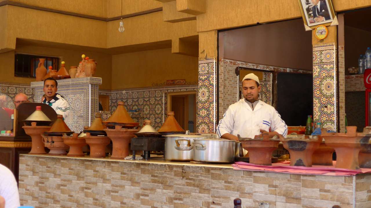 Hierzu musste zunächst 110 km lang das Geradeausfahren geübt werden. Die Dades-Schlucht durchfuhr unser Guide ohne Fotostopp und setzte sich nach Ankunft am Aussichtpunkt sofort in eine Kneipe zum Mittagessen.