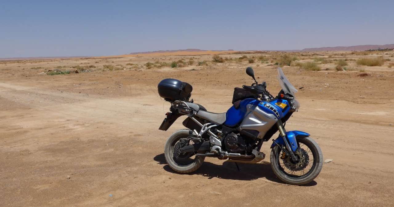 Ich bin die Tour mit Anakee 3 gefahren. Andere Mitreisende hatte reine Straßenreifen montiert und schafften die Tour auch. Es gab ab und an kurze Schotterabschnitte, hauptsächlich in Baustellen. Meinen Versuch in der Wüste zu fahren, habe ich sofort wieder abgebrochen, weder auf Sand noch im Fesch-Fesch zeigte der Anakee-Vorderreifen Führungsqualitäten. Schotter oder auf Erdreich stellten kein Problem dar.