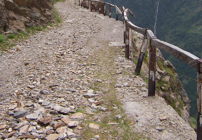 Dann hat es mir in einer Linkskurve, die ich wegen der verdreckten Straße schon sehr vorsichtig angefahren bin, doch auf irgendwelchem Sand oder Schmodder den Vorderreifen plötzlich um ein paar Zentimeter versetzt, der sich dann aber gleich wieder fing. Mein linker Fuß rutschte dabei von der Raste und wurde zwischen Asphalt und Motorrad nach außen gedreht. Ist nichts weiter passiert - aber ich kam ins Grübeln. Wenn es den Fuß ein paar Zentimeter weiter gedreht hätte, bis es Kracks macht, wäre ich da ganz allein gestanden mitten in der Pampa mit maladem Schaltfuß. Dann wäre die Tour vorbei gewesen und ich hätte mit ADAC und was weiß ich für einem Aufwand mich, meinen Krempel und das Mopped nach Hause schaffen lassen müssen. Das hat mich dann auf den Trichter gebracht, dass ich künftig auf jeden Fall einen Reifen will, der sowohl vom Gummi als auch vom Profil her den bestmöglichen Grip bietet - auch wenn ich damit am Kesselberg oder am Großglockner vielleicht ein bisserl langsamer unterwegs sein sollte.