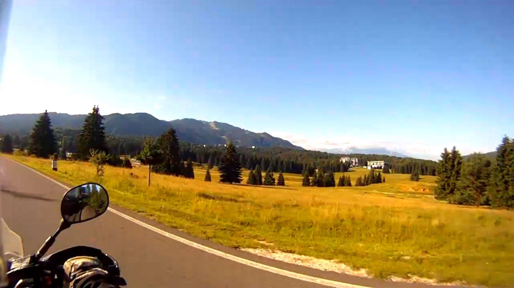 Jetzt begann der Prisloppass mit seinen 1416m Höhe. Der komplette Pass war eine Baustelle. Geteert war er bereits, aber die Randsteine waren noch nicht gesetzt. Die Geschwindigkeitsbeschränkungen wechselten ständig von 30 über 40 bis 60km/h. Irgendwann haben wir den Überblick verloren und sind den Pass in Normalgeschwindigkeit, angepasst an die nassen Bedingungen, gefahren. Verkehr fand auf der Straße so gut wie nicht statt. Auf dem Weg zur Passhöhe konnte man schon erahnen, dass es bald zu regnen beginnen wird. Auf der Passhöhe war es neblig und die Temperatur lag bei 10. Grad.