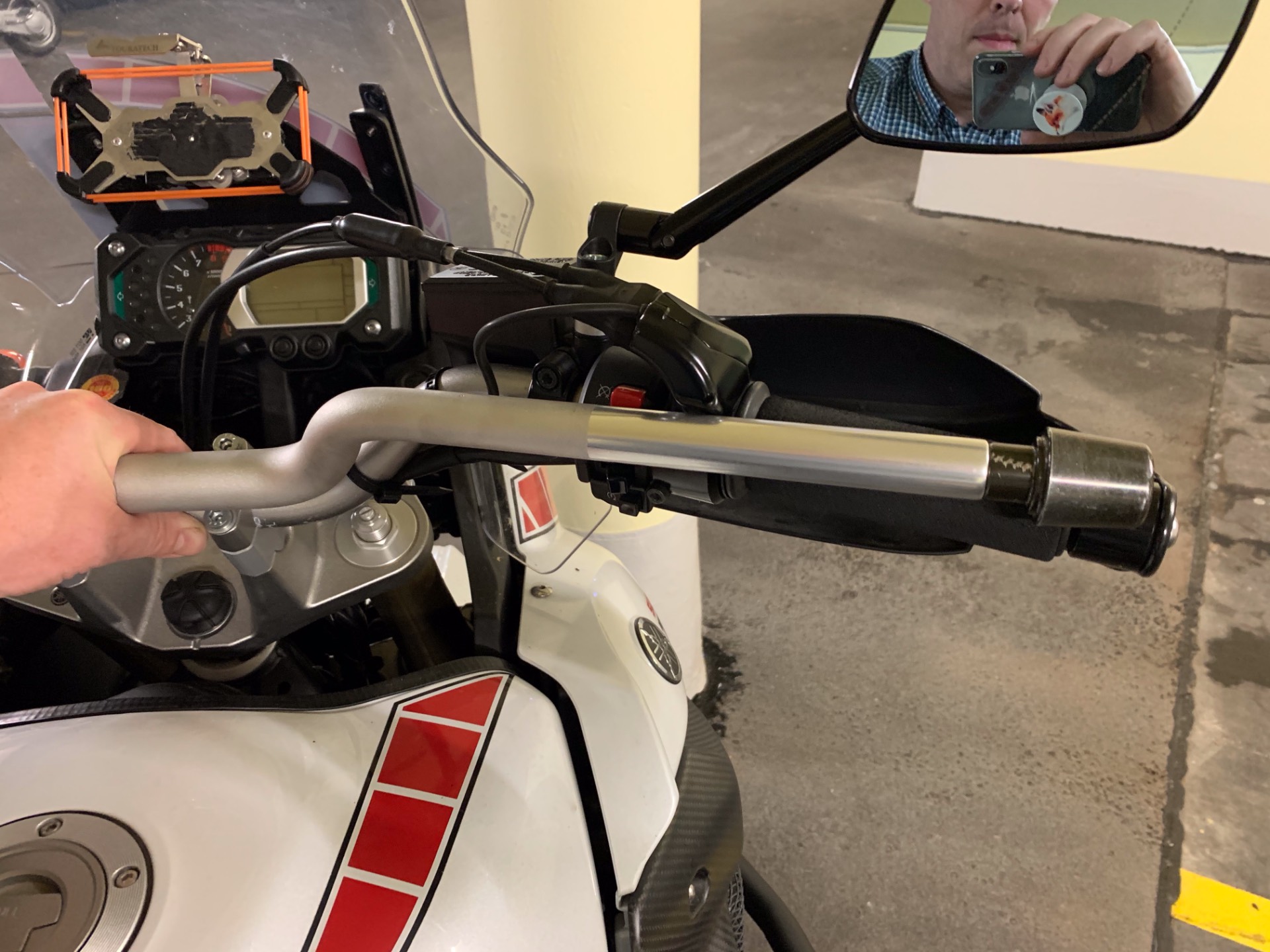 Ich habe dann noch auf die Lenkerverlegung von SW Motech nach oben und hinten umgerüstet.