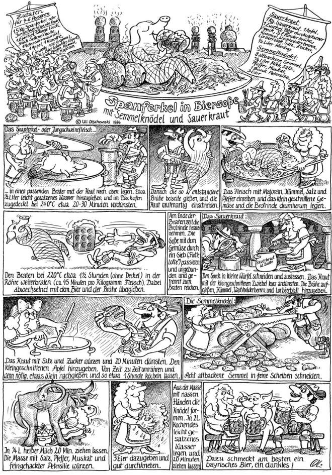 Kommt der Wirt zurück in die Kneipe. Unterm Arm trägt er 2 Melonen und viele kleine Ferkel stehen um ihn herum.